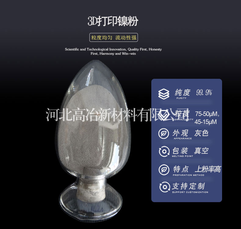 - 1、颗粒形态为球形的粉体,粉体具有流动性好,上粉率高,粉末粒度均匀等特点。