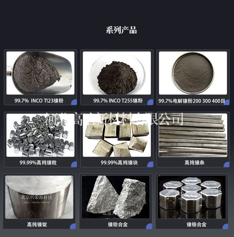 公司主要从事高纯金属、高纯合金,特殊功能金属,特殊功能粉体材料及高纯粉体材料的研发、生产和销售。公司拥有高纯金属,功能合金,功能粉体材料等生产线以及金属材料实验室。产品在高端装备、高端制造领域具有广泛应用前景,目前主要应用于粉末冶金、3D打印、注射成型(Mim)、半导体、液晶显示(TFT)、镍基高温合金、航空钛合金、原子能、船舶工业、航空工业等。