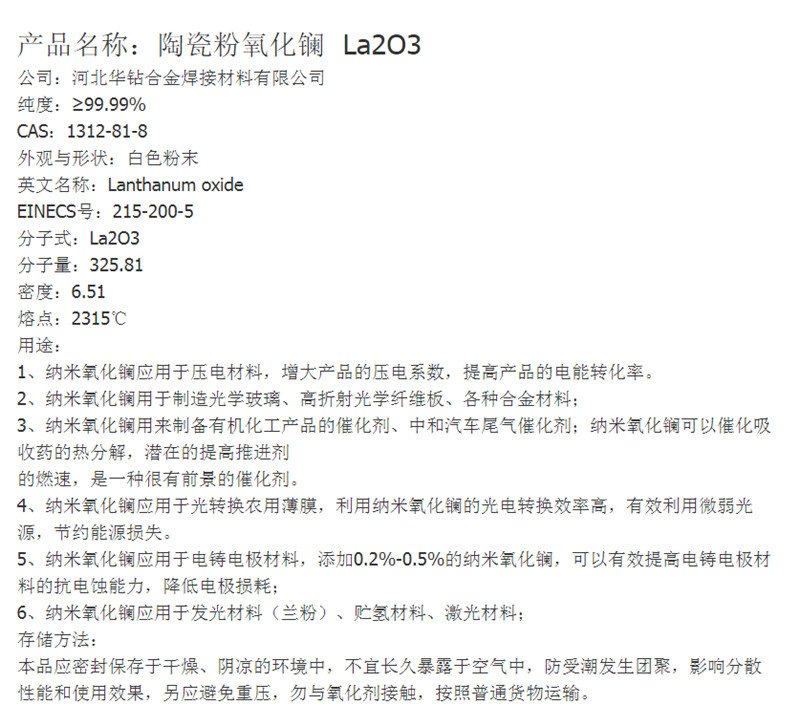 华钻合金氧化镧粉电铸电极材料微米高纯三氧化二镧发光材料氧化镧