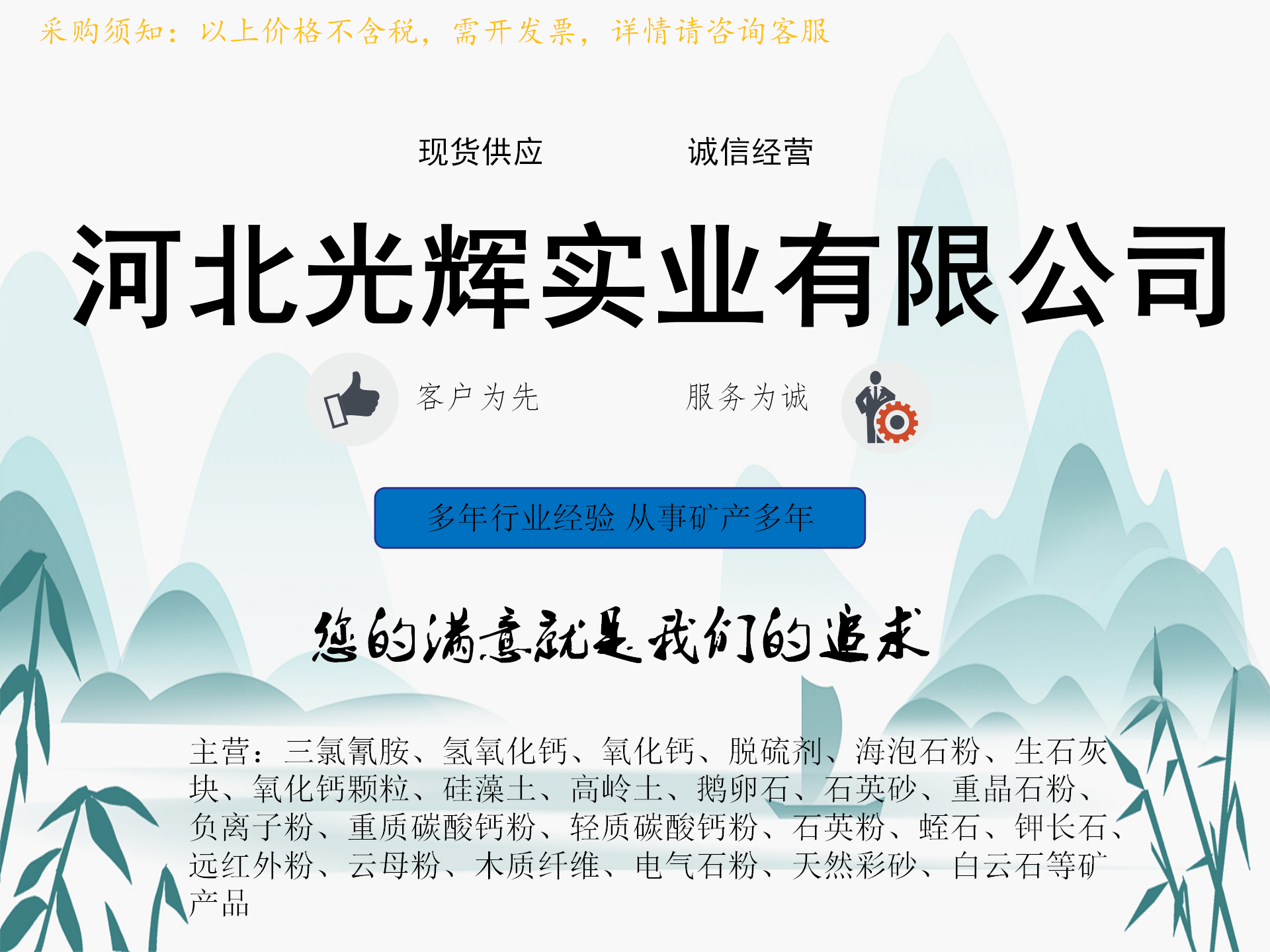 生石灰、熟石灰、碳酸钙、滑石粉、煅烧高岭土、硅藻土、工业尿素