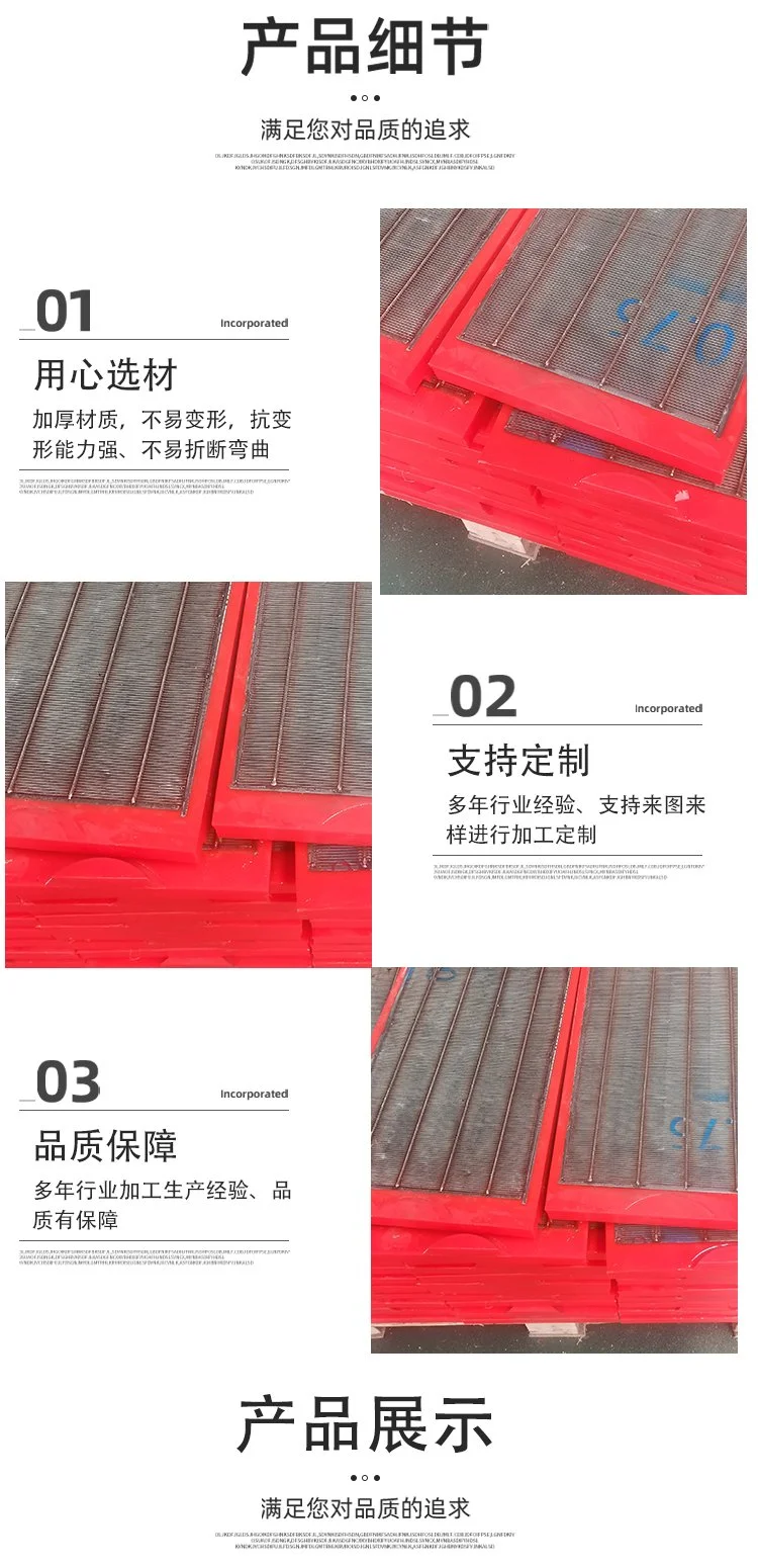 聚氨酯、叶轮盖板、筛网筛板、橡胶滚轮、牛筋筛板、皮带机刮刀、浇筑牛筋条、泥沙分离器、抗静电缓冲床、输送机清扫器、碳钢丝矿筛网、高分子刮料器、优力胶挤出件、矿用震动筛分样