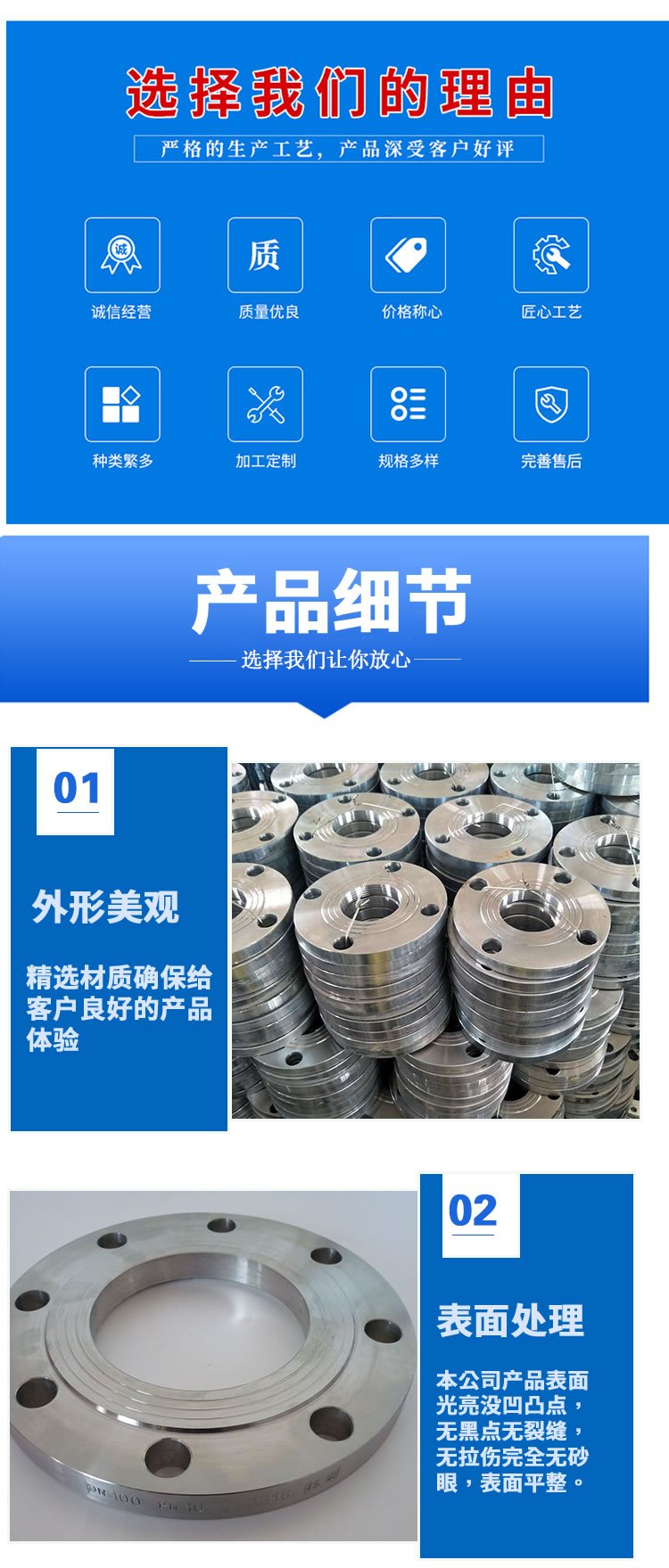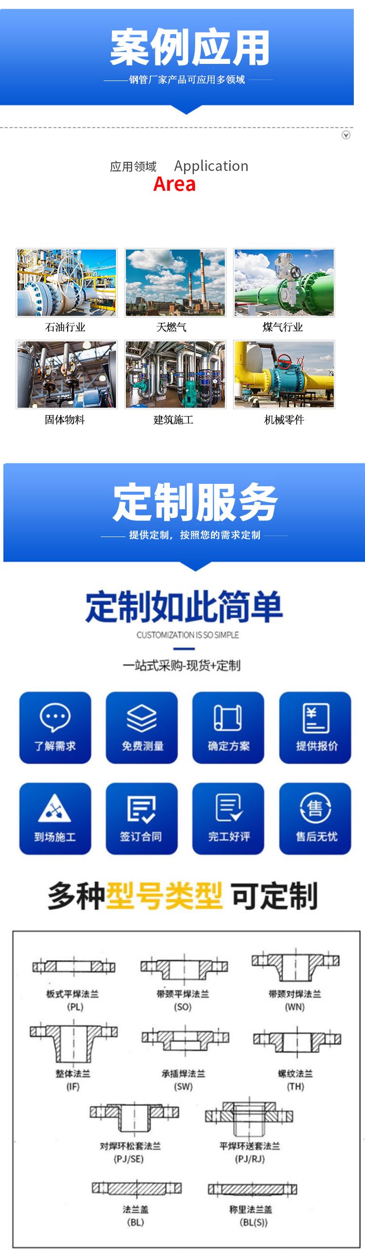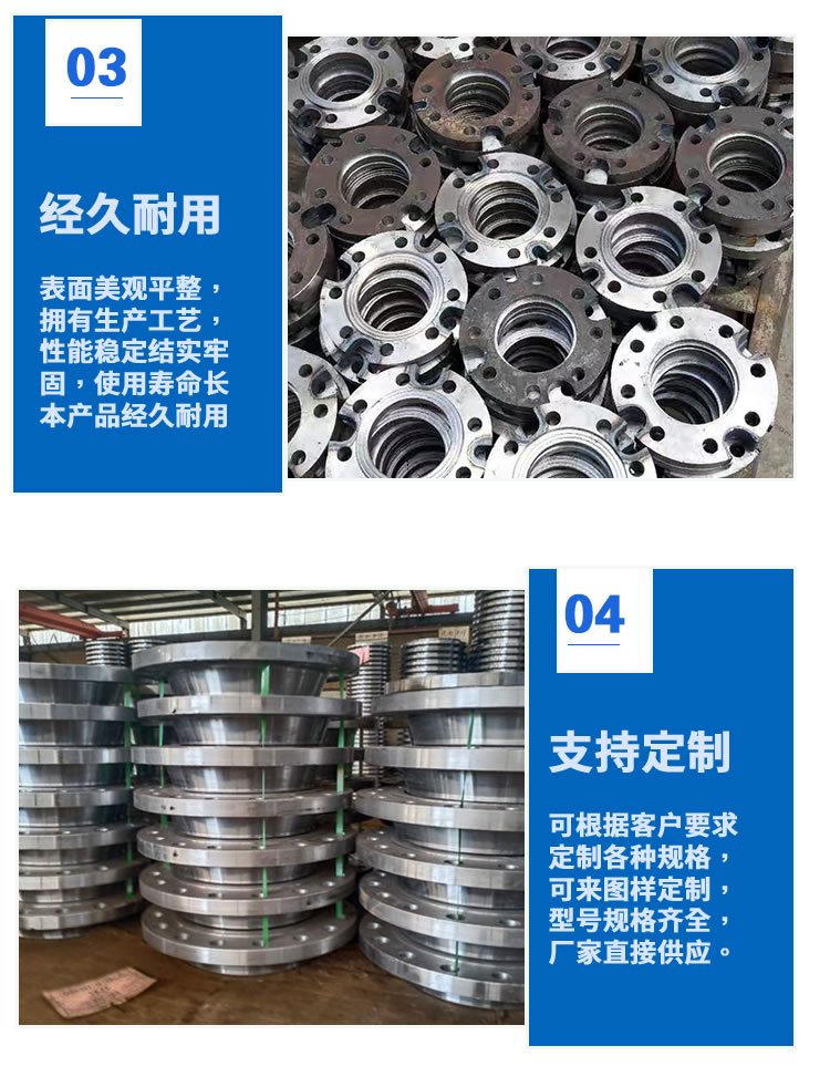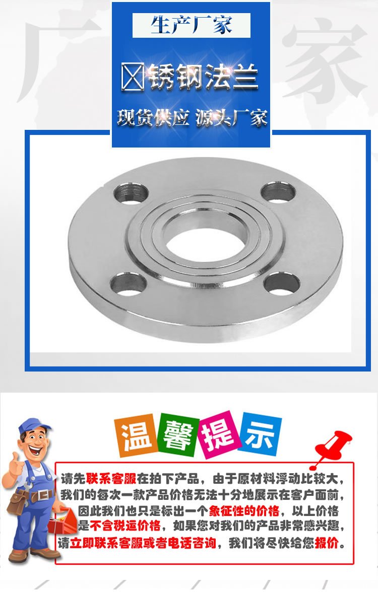 法兰是一种盘状零件,在管道工程中最常见,法兰成对使用,在管道工程中,法兰主要用于管道连接。在需要连接的管道中,安装了各种法兰,低压管道可以使用丝接法兰,4kg以上压力的使用焊接法兰,在两片法兰盘之间添加一个密封点,然后用螺栓拧紧,具有不同压力的法兰具有不同的厚度,并使用不同的螺栓,当水泵和阀门与管道连接时,这些设备的零件也被制成相应的法兰形状,也称为法兰连接。凡是在两个平面的周边使用螺栓连接并且同时封闭的连接零件,通常称为“法兰”,如通风管道的连接。这种零件可以称为“法兰类零件”,但是这种连接只是一个设备的布局,例如法兰和水泵之间的连接,因此称水泵为“法兰类零件”是不好的,较小型的如阀门等,可以称为“法兰类零件”。