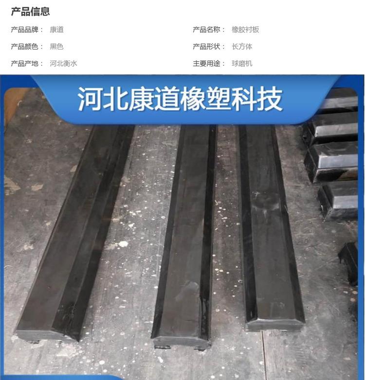 康道生产 黑色长方体球磨机提升条 耐磨低噪音低耗能橡胶衬板