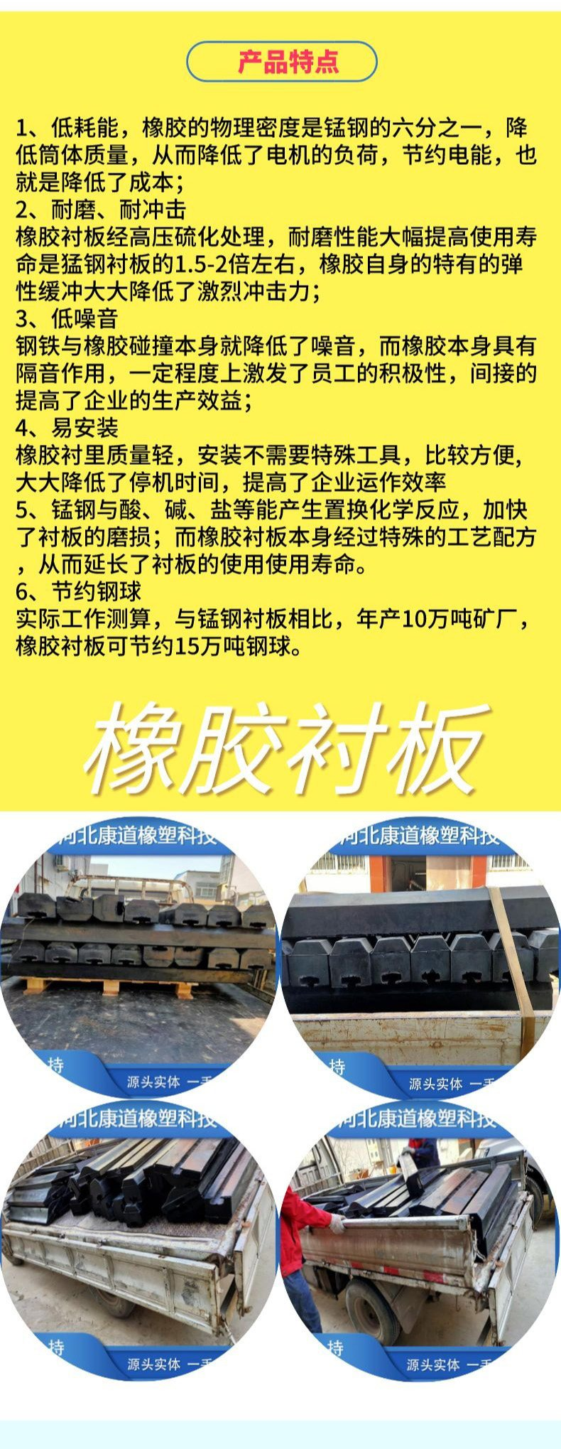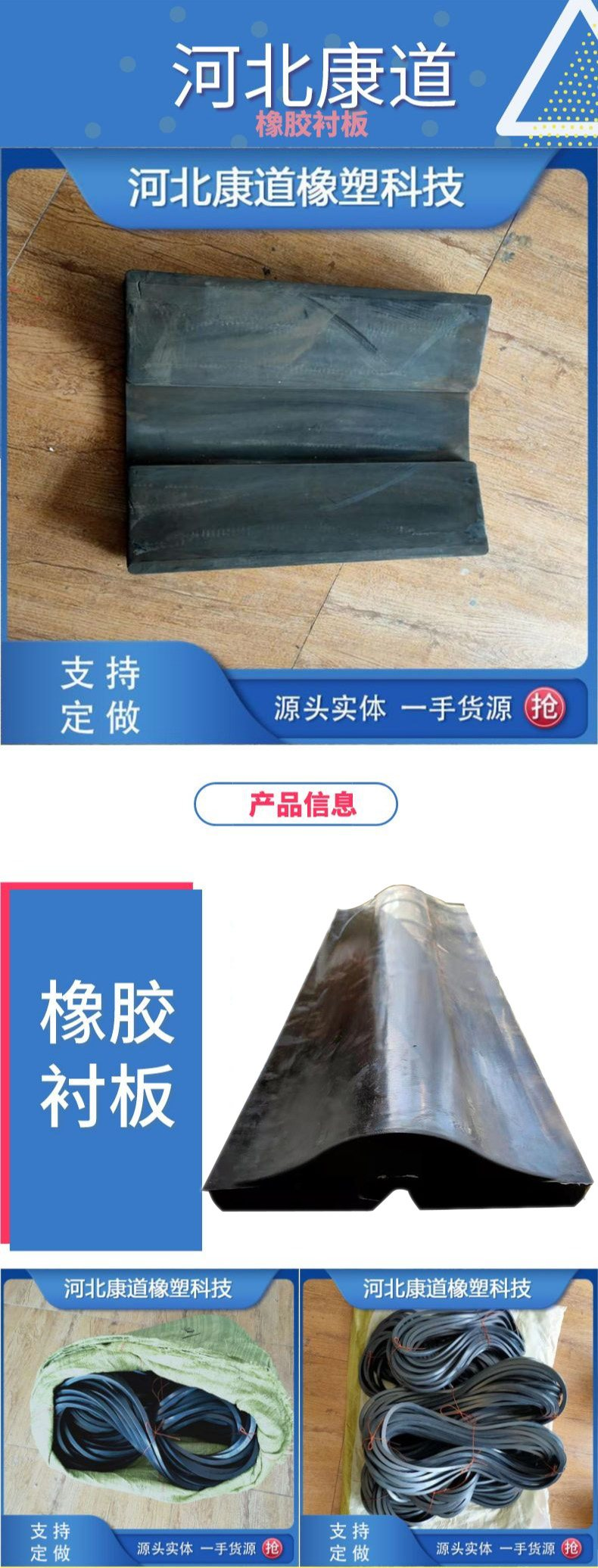 康道生产 894牌号橡胶衬板 润磨机耐磨橡胶板 橡胶提升条