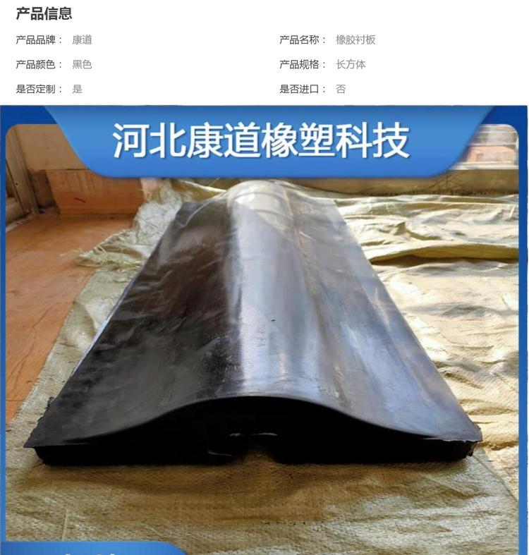 康道生产 扇形橡胶衬板 高压硫化处理 润磨机钢厂耐磨胶板