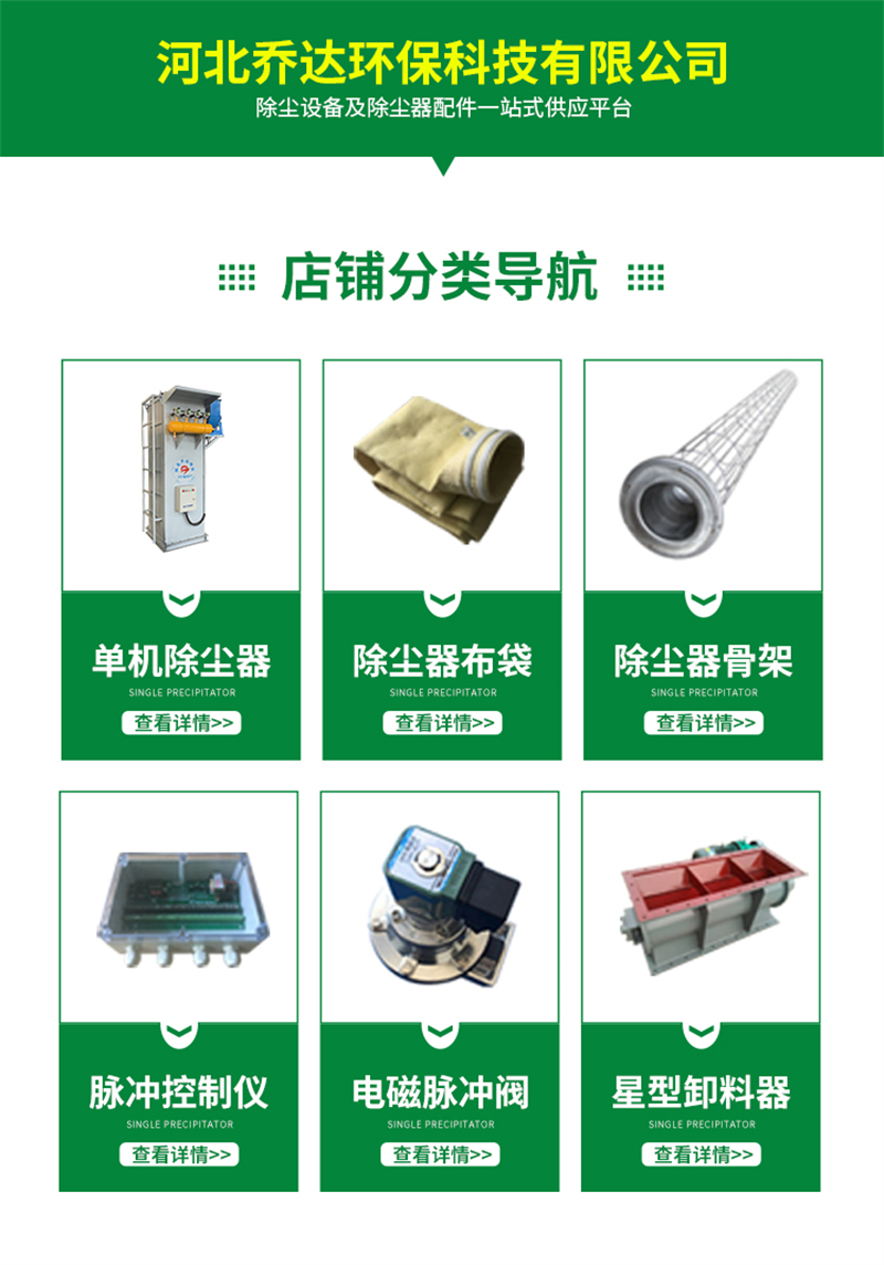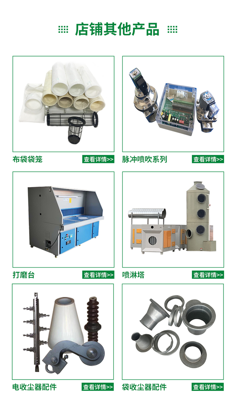 除尘设备、袋式除尘器、电收尘器、滤筒除尘器、木工除尘器、除尘器布袋、除尘器骨架、卸料器、脉冲阀、气缸、通风蝶阀、插板阀、芒刺线、阳极板、尘中轴承、螺旋输送机、斗士提升机、刮板输送机、氟美斯滤袋、龙骨架