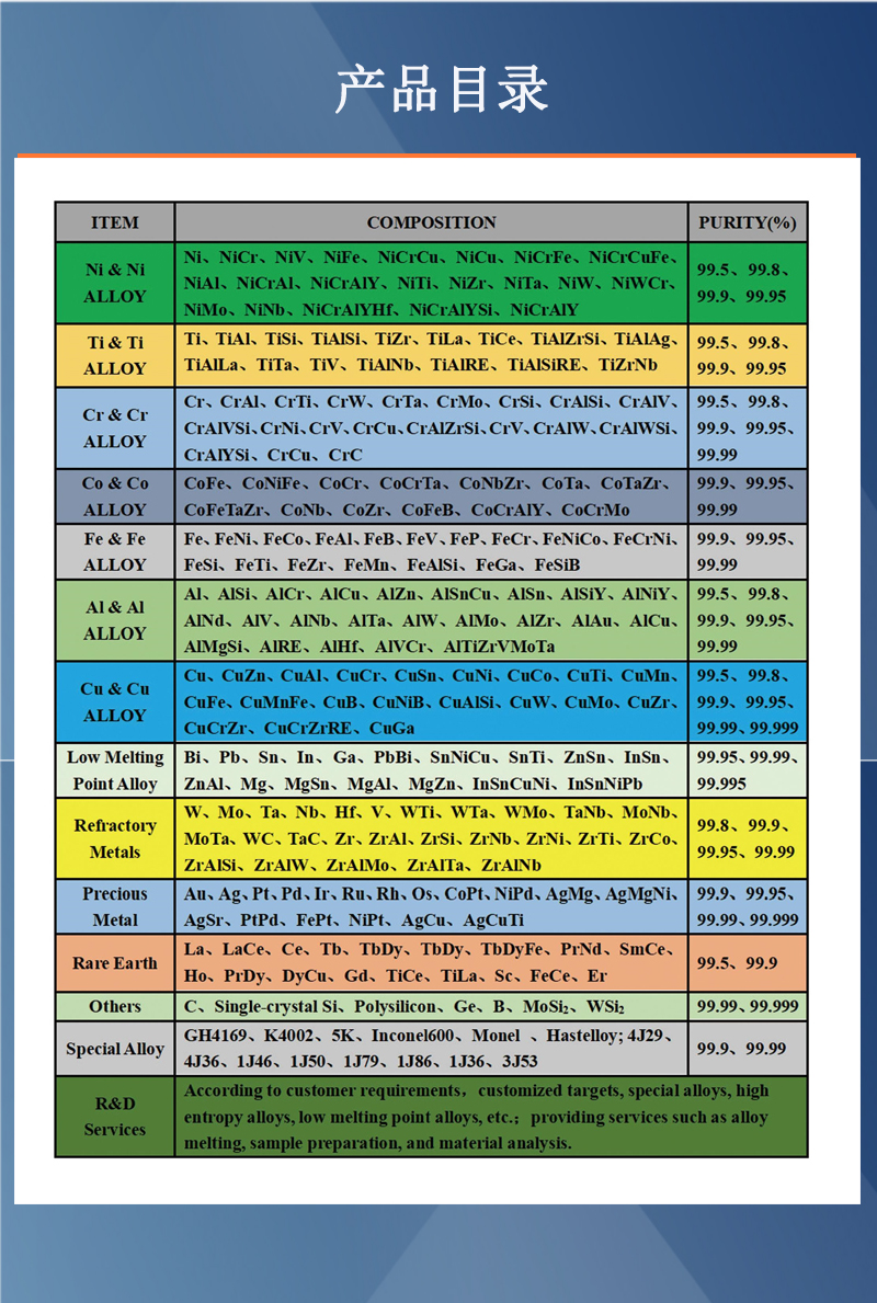 科研实验、合金靶材、高纯颗粒、真空熔炼、镀膜材料、拉伸试样件