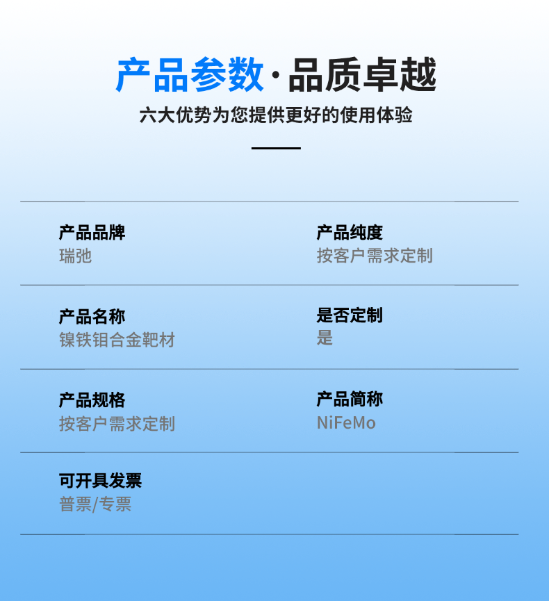 瑞弛 高纯度镍铁钼合金靶材 NiFeMo 管靶 磁控溅射 科研实验