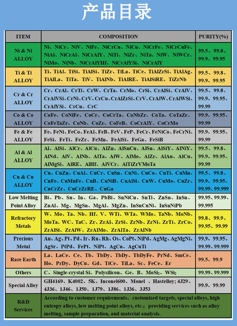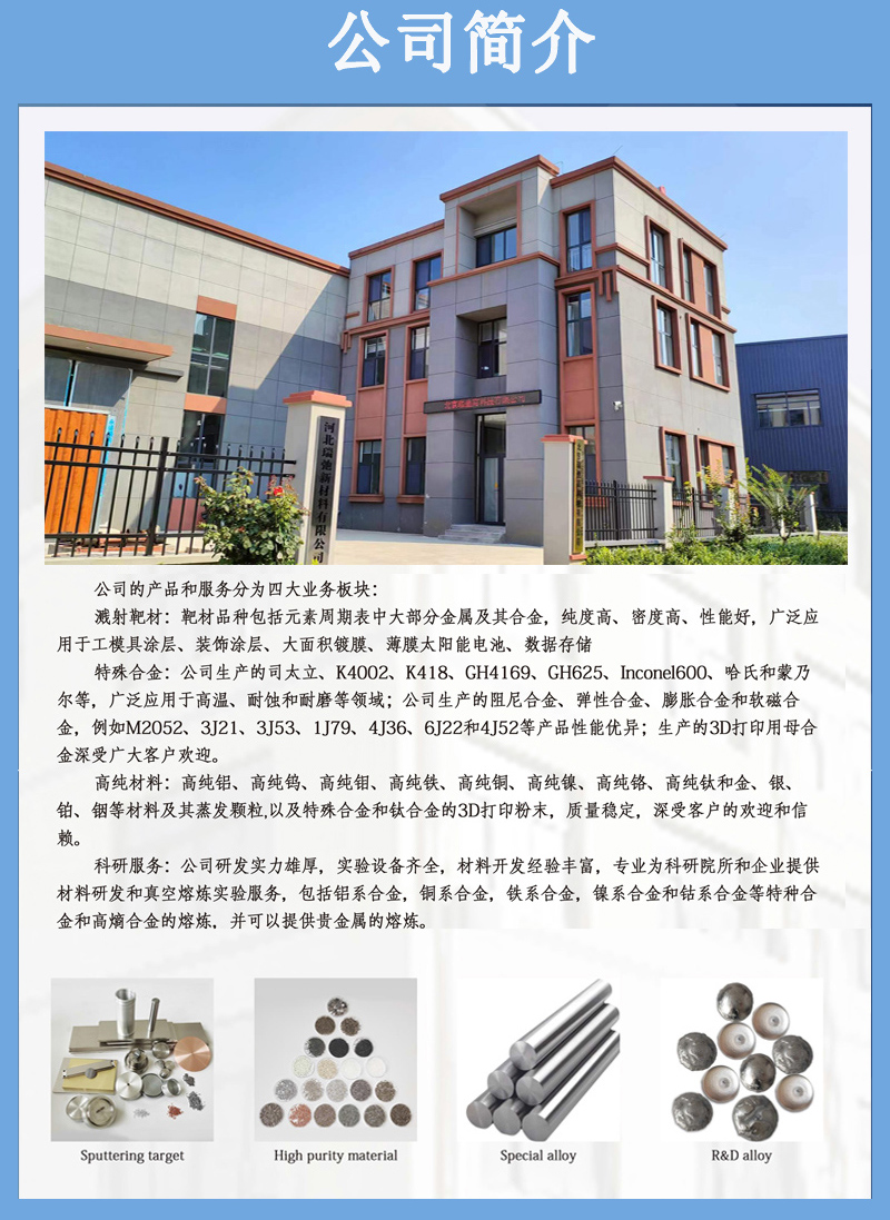 科研实验、合金靶材、高纯颗粒、真空熔炼、镀膜材料、拉伸试样件