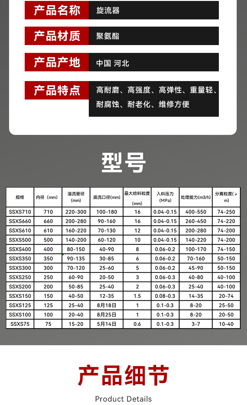 聚氨酯水力旋流子 旋流器组 加厚耐磨型 脱硫旋流器 泥沙分离