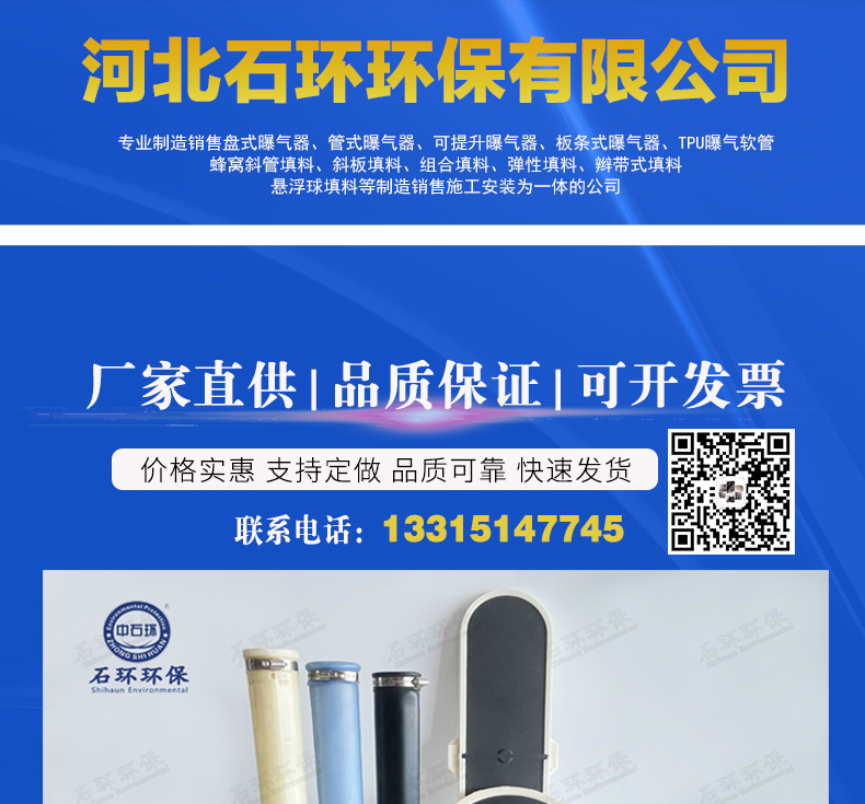 管式曝气器、可提升曝气器、曝气管、盘式曝气器、TPU曝气软管、刚玉曝气器、生物绳填料、斜管填料