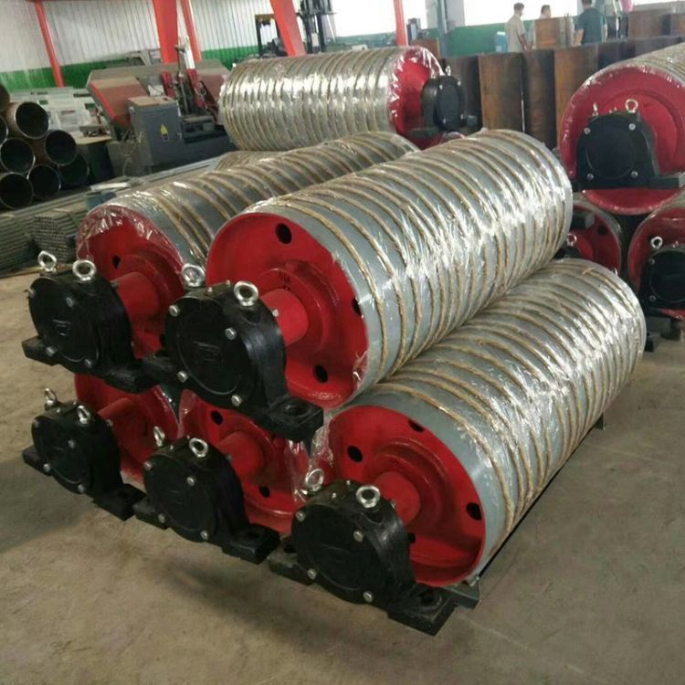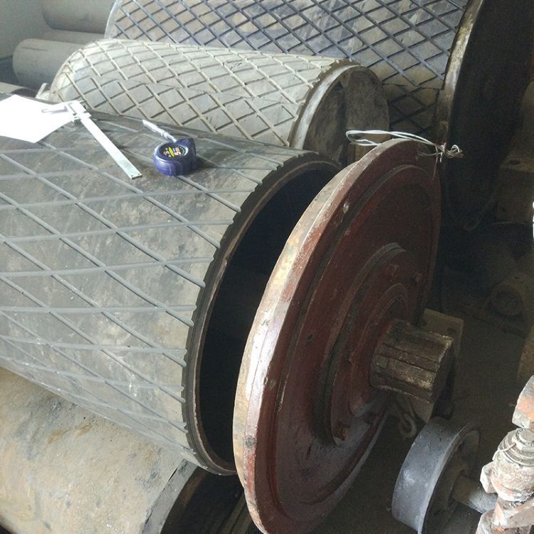 是皮带输送运输系统中重要部件和组成部分,滚筒的包胶能有效改善输送系统的运行状况,保护金属滚筒不被磨损,防止输送带的打滑,使滚筒与皮带同步运转,从而保证皮带的运转。滚筒的包胶还能有效的防止滚筒与皮带之间的滑动摩擦,减少滚筒表面的物料粘结,从而减小皮带的跑偏和磨损。