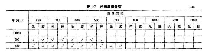 改向滚筒的直径与长度符合《GB/T988-1991带式输送机托辊基本参数与尺寸》的规定,见下表。