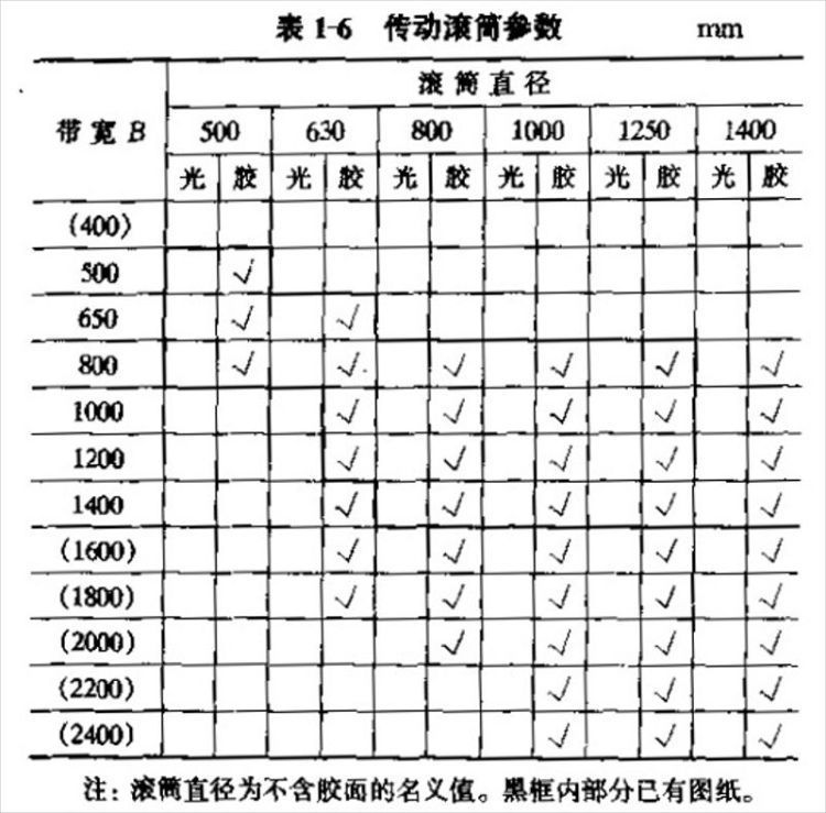 传动滚筒的直径与长度符合《GB/T988-1991带式输送机托辊基本参数与尺寸》的规定,见下表。