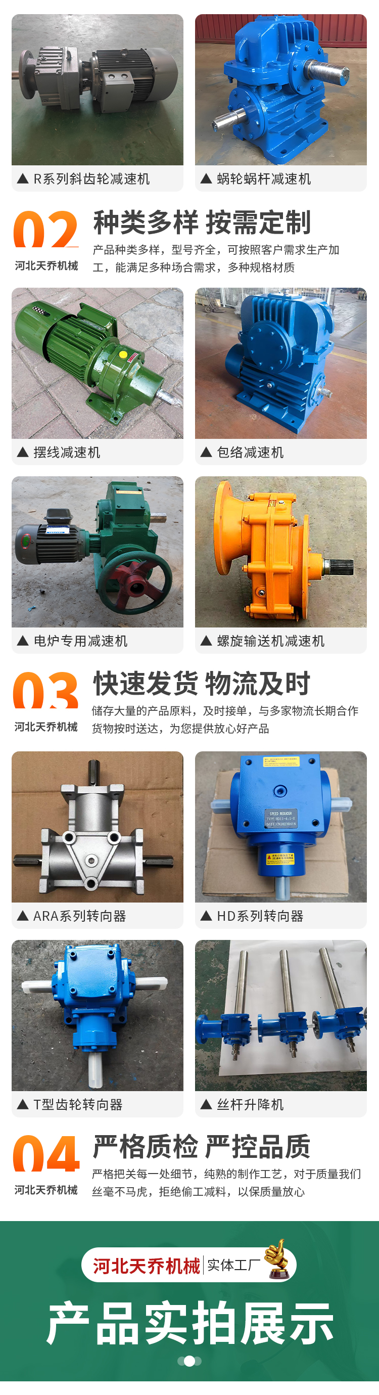 四大系列减速机、k系列减速机、R系列减速机、F系列减速机、s系列减速机、斜齿轮减速机、摆线减速机、蜗轮蜗杆减速机、行星摆线减速机、RV减速机、齿轮减速机、丝杠升降机、转向器、T型齿轮转向器、HD系列转向器、ARA系列转向器、电炉减速机、螺旋输送机减速机、包络减速机