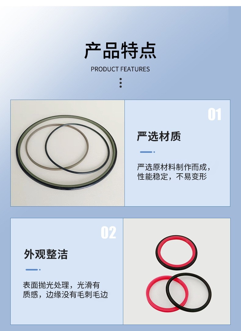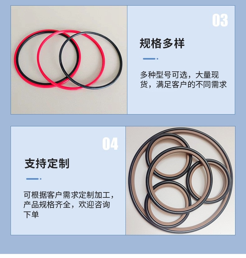 聚氨酯密封圈、橡胶密封圈、聚甲醛密封圈、酚醛树脂夹布密封圈、柱窝填充物、聚四氟乙烯密封圈、尼龙密封圈、聚乙烯密封