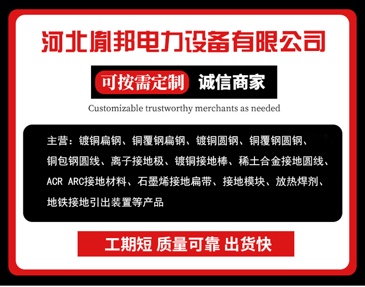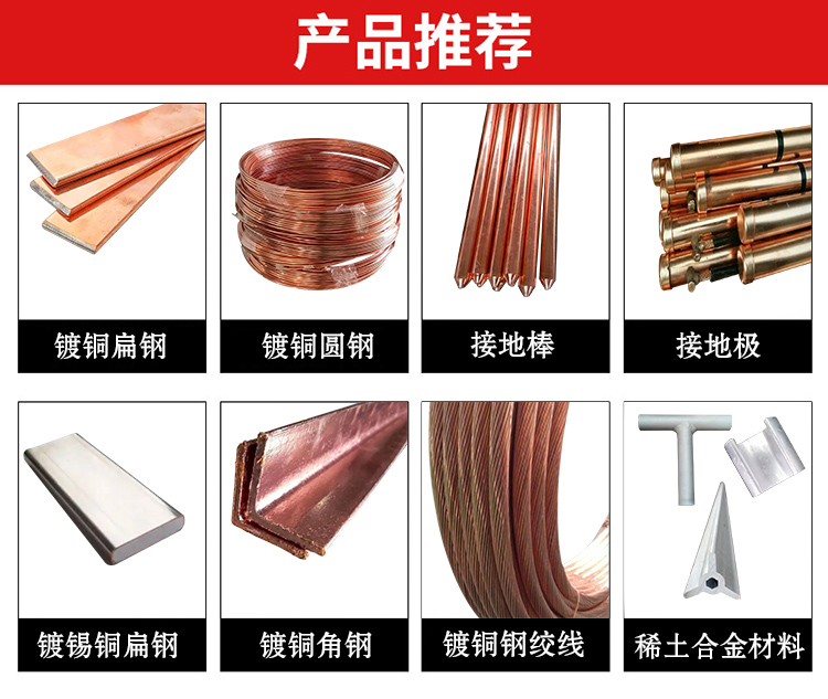 石墨烯接地材料、锌包钢、稀土铜铝合金接地材料、石墨基接地材料、镀铜圆钢、镀铜扁钢、接地模块、镀锡铜、稀土、镀铜