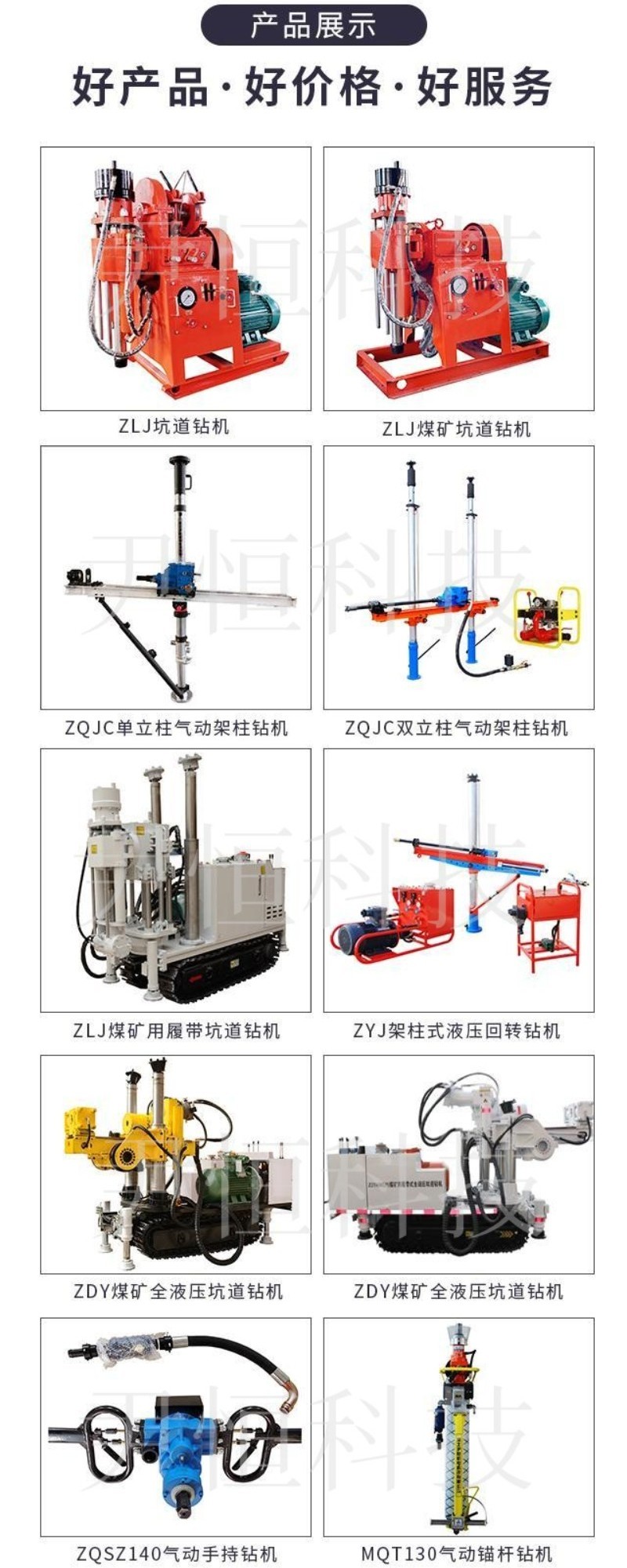 探水钻机、注浆钻机、注浆加固钻机、钻注一体机、履带式钻机、液压架柱钻机、锚杆钻机、支护钻机、液压坑道钻机、矿用钻机、煤矿钻机
