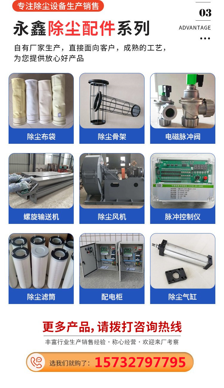 气箱脉冲除尘器、布袋除尘器、脉冲布袋除尘器、催化燃烧设备、活性炭吸附箱、滤筒除尘器、喷淋塔、电捕焦油器、等离子净化器、旋风除尘器、除尘布袋、除尘骨架、脉冲电磁阀、螺旋输送机、气旋塔、加湿机、打磨台、斗式提升机、喷漆房、塑烧板除尘器、脱硫塔、卸料器