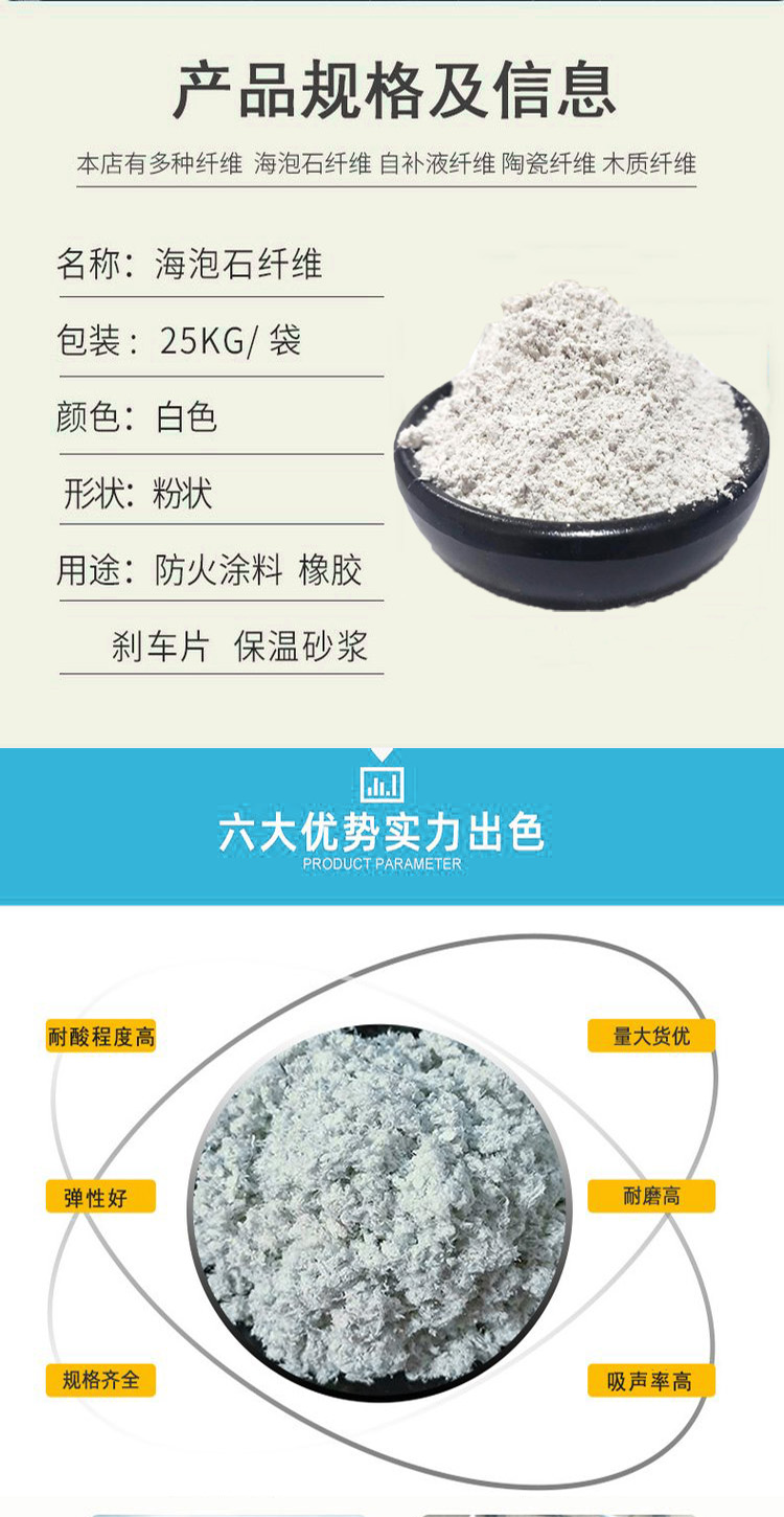 厂家批发海泡石助滤剂脱色剂吸附剂油田堵漏保温材料用石棉绒