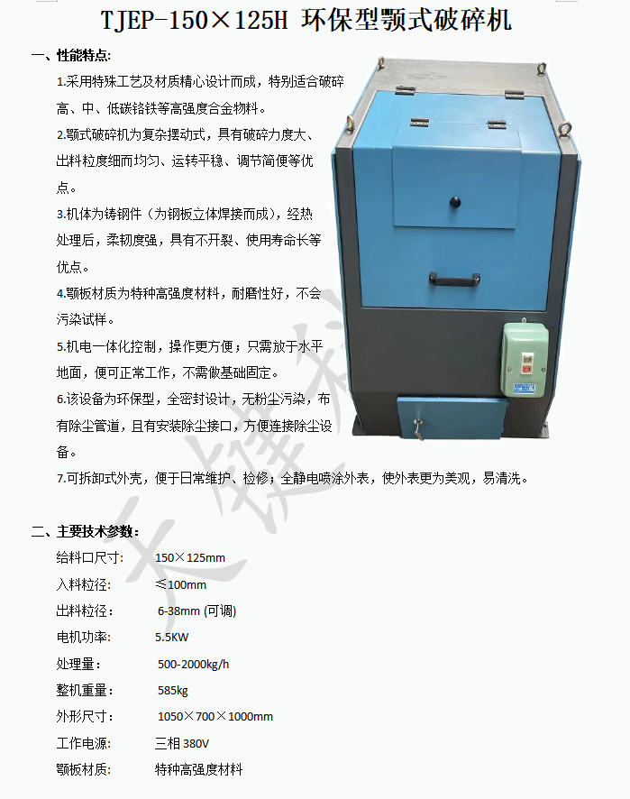 天键科技 颚式破碎机 环保型 全密封设计 高强度颚板 性能特点