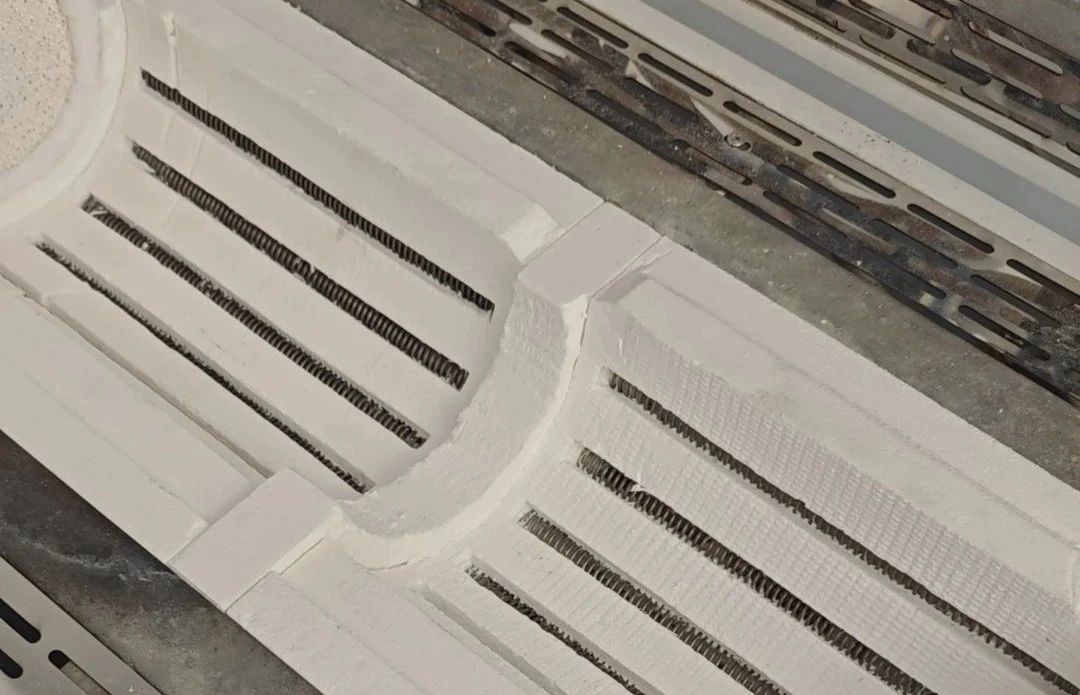 氧化铝纤维炉膛并非传统致密陶瓷砖,而是采用高纯度氧化铝(Al₂O₃)为主要原料,添加少量二氧化硅(SiO₂)等其他氧化物,通过特殊工艺制成的多孔轻质纤维结构。这种设计赋予了它卓越的性能: