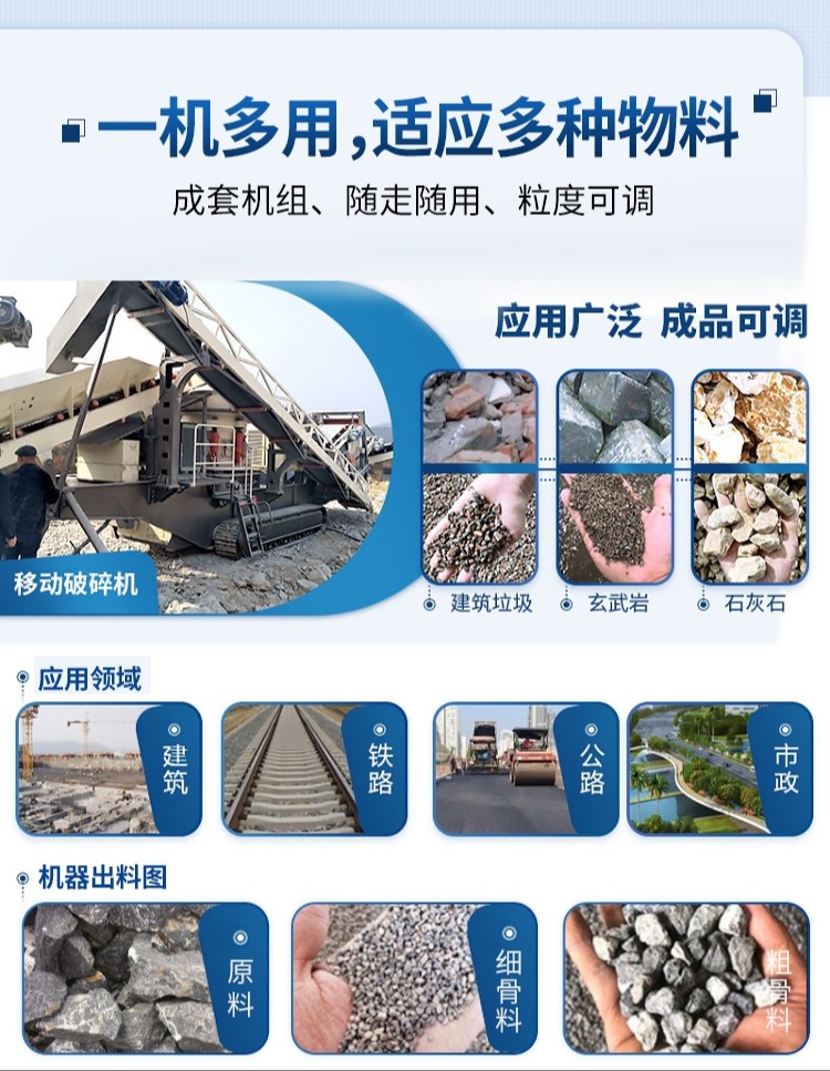 移动破碎站、制砂生产线、石料生产线、颚式破碎机、重锤破碎机、圆锥破碎机、反击破碎机、冲击破碎机、制砂机、整形机、细碎机、洗砂机