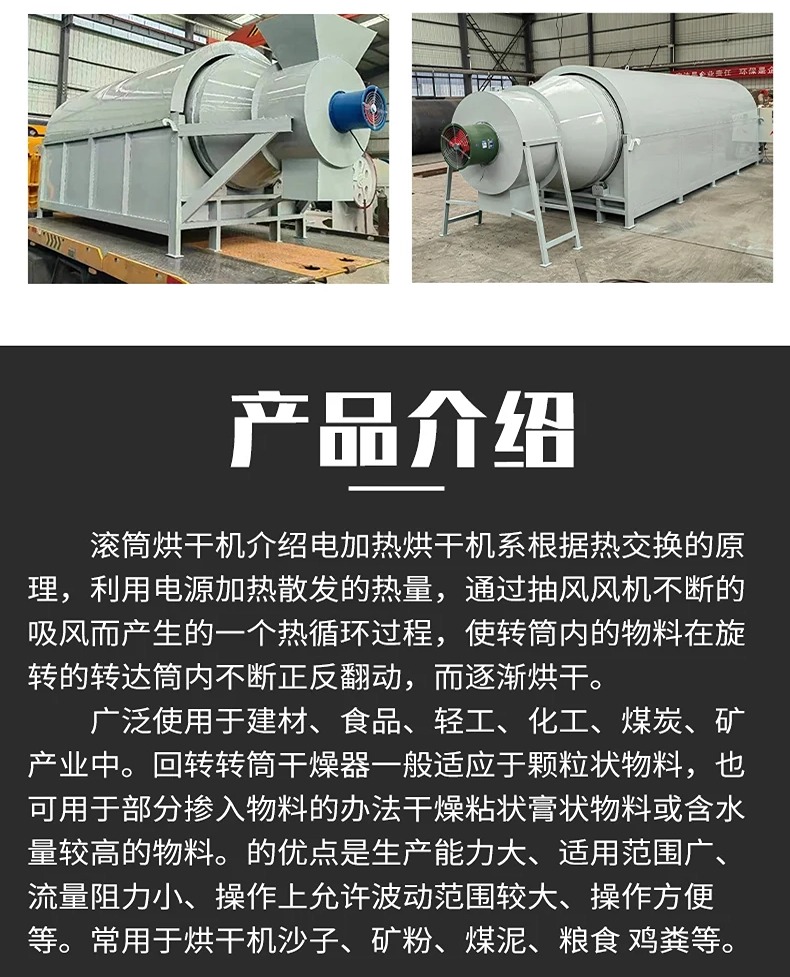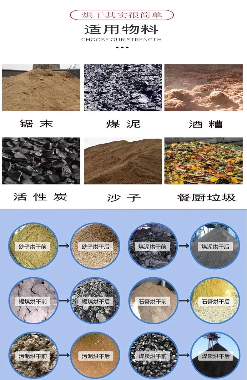 垃圾固废破碎机、工业滚筒烘干机、农业滚筒烘干机、双轴撕碎机、金属破碎机、多功能粉碎机、商用炒货机、连续式工业矿粉矿渣烘干机、农业黑水莽虫草鸡粪脱水机、屠宰场废料鸡毛猪毛动物毛干燥机、锯末刨花泡沫颗粒烘干机、工业化工颗粒化工粉烘干机