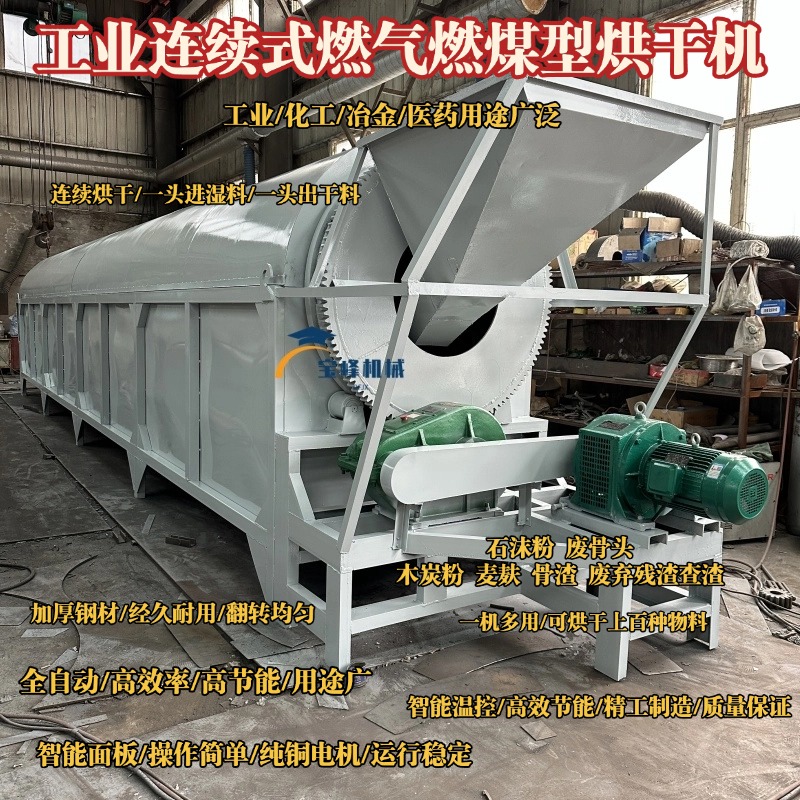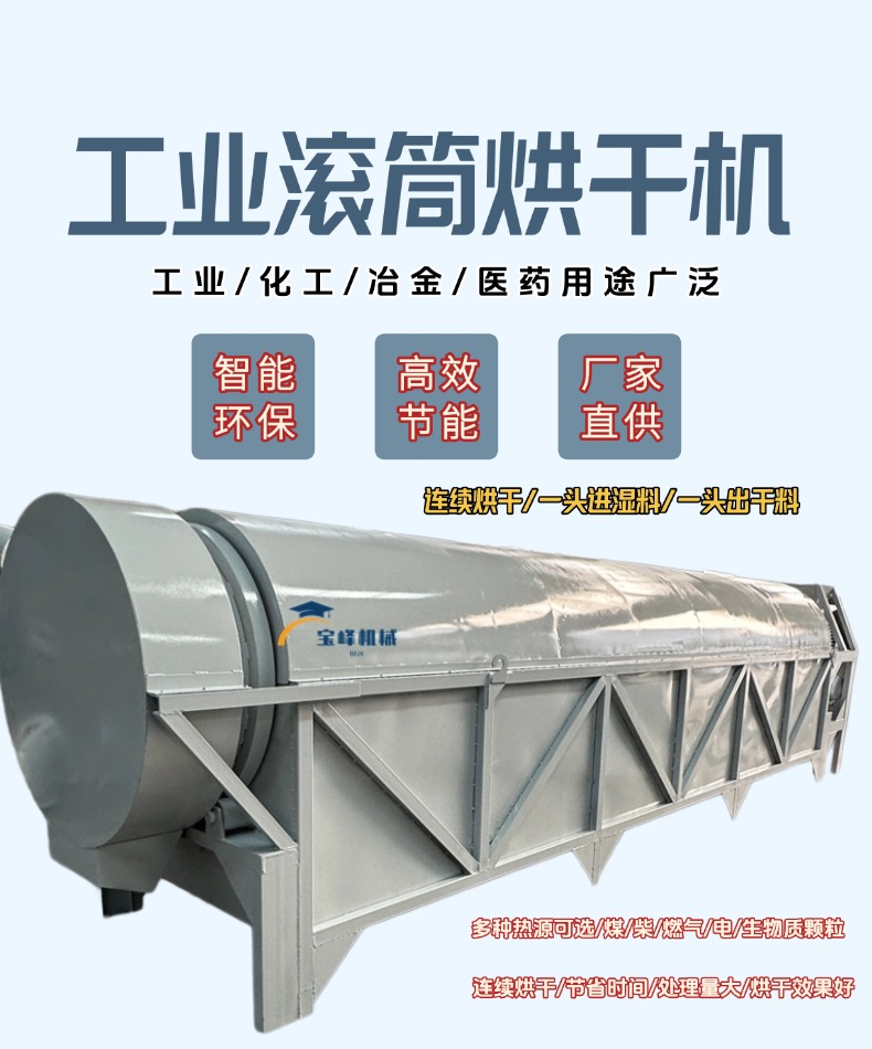 长滚筒污泥铜渣除湿铁削矿粉干燥机煤炭猪蹄壳果渣纯碱钾肥烘干机