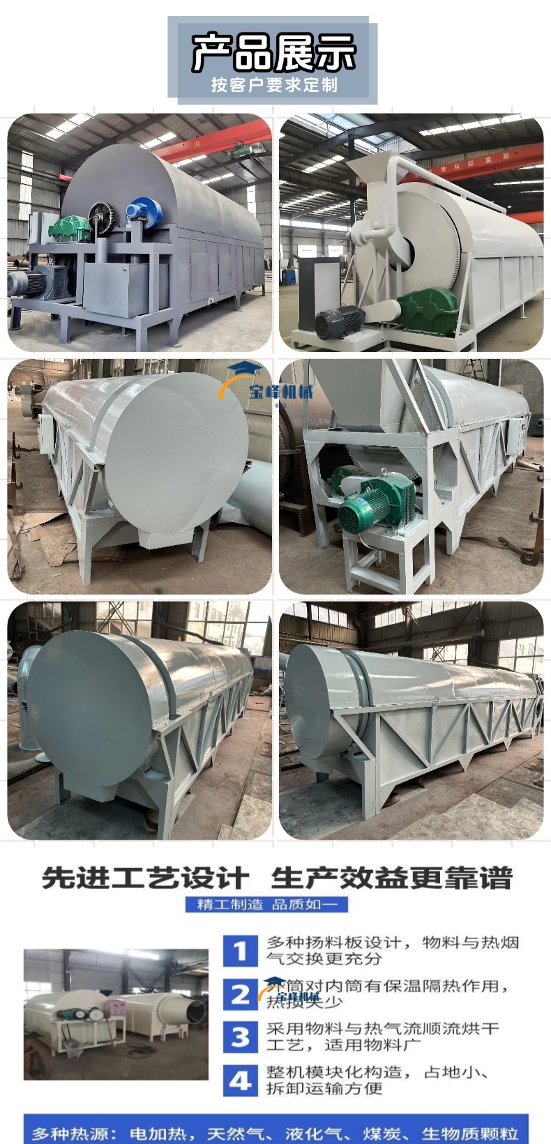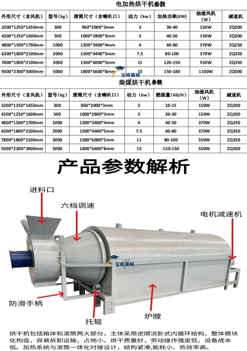 垃圾固废破碎机、工业滚筒烘干机、农业滚筒烘干机、双轴撕碎机、金属破碎机、多功能粉碎机、商用炒货机、连续式工业矿粉矿渣烘干机、农业黑水莽虫草鸡粪脱水机、屠宰场废料鸡毛猪毛动物毛干燥机、锯末刨花泡沫颗粒烘干机、工业化工颗粒化工粉烘干机