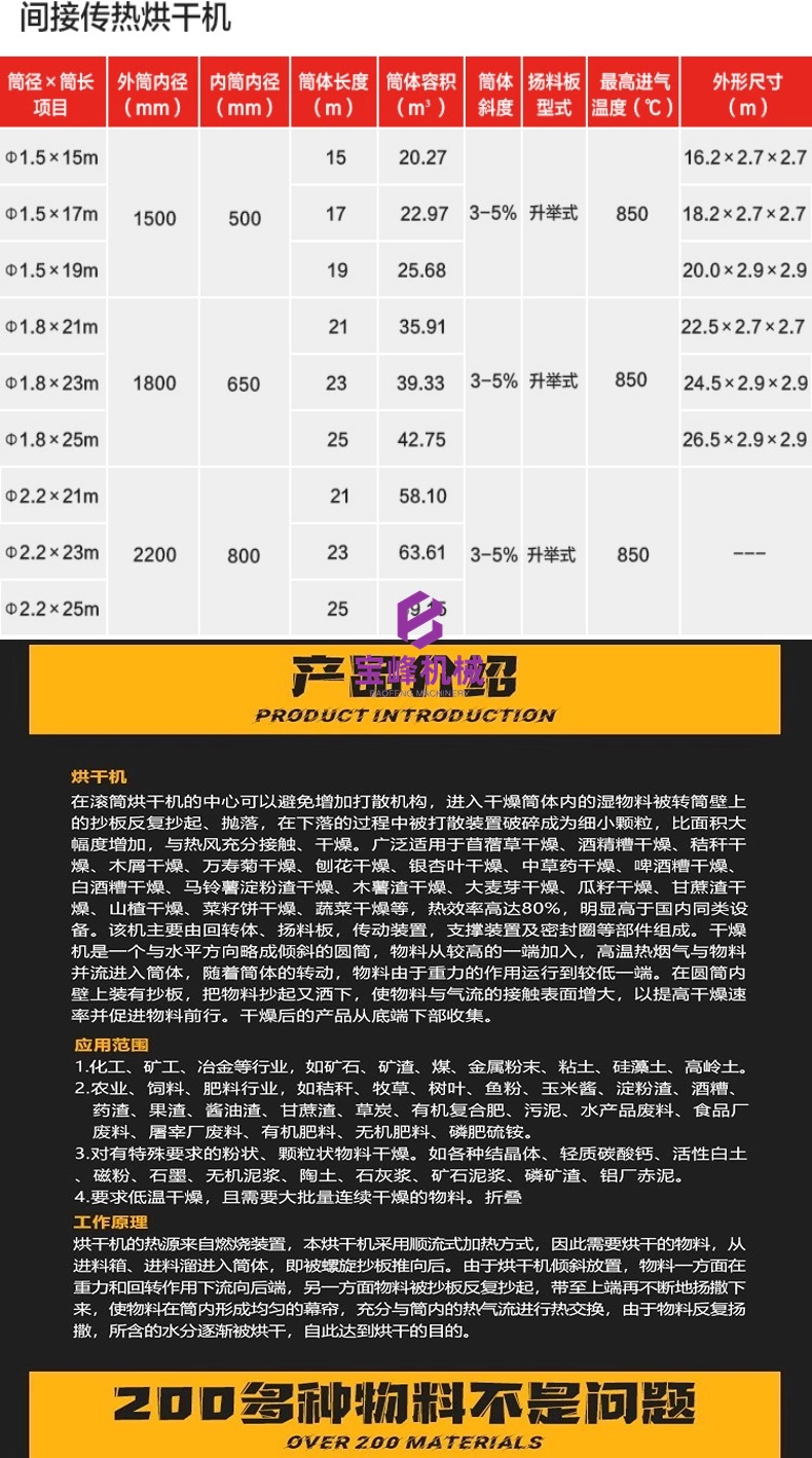 垃圾固废破碎机、工业滚筒烘干机、农业滚筒烘干机、双轴撕碎机、金属破碎机、多功能粉碎机、商用炒货机、连续式工业矿粉矿渣烘干机、农业黑水莽虫草鸡粪脱水机、屠宰场废料鸡毛猪毛动物毛干燥机、锯末刨花泡沫颗粒烘干机、工业化工颗粒化工粉烘干机