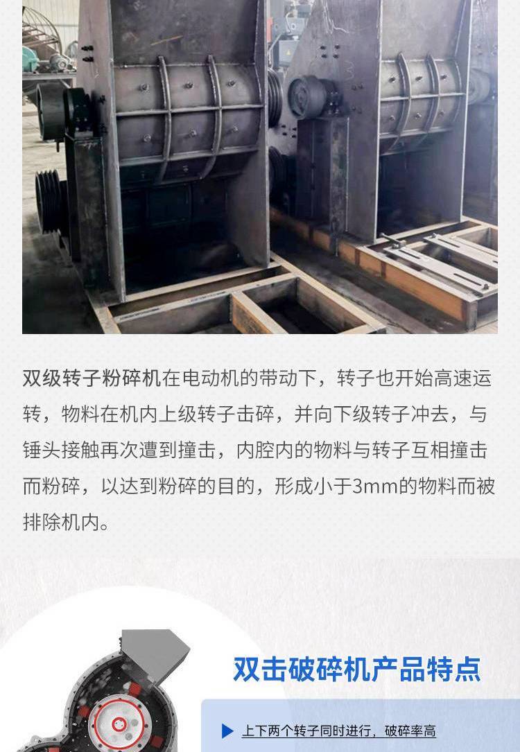 双极无筛高细破碎机 页岩煤矸石粉碎机 制砂生产线双击破设备