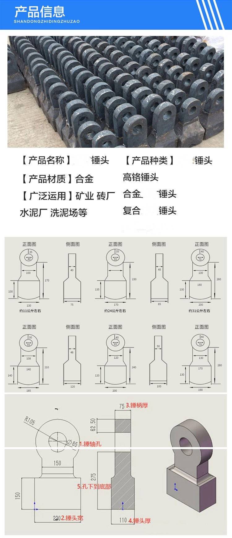 热熔复合高铬锤头 矿山破机甩锤方锤 冲击制砂机配件