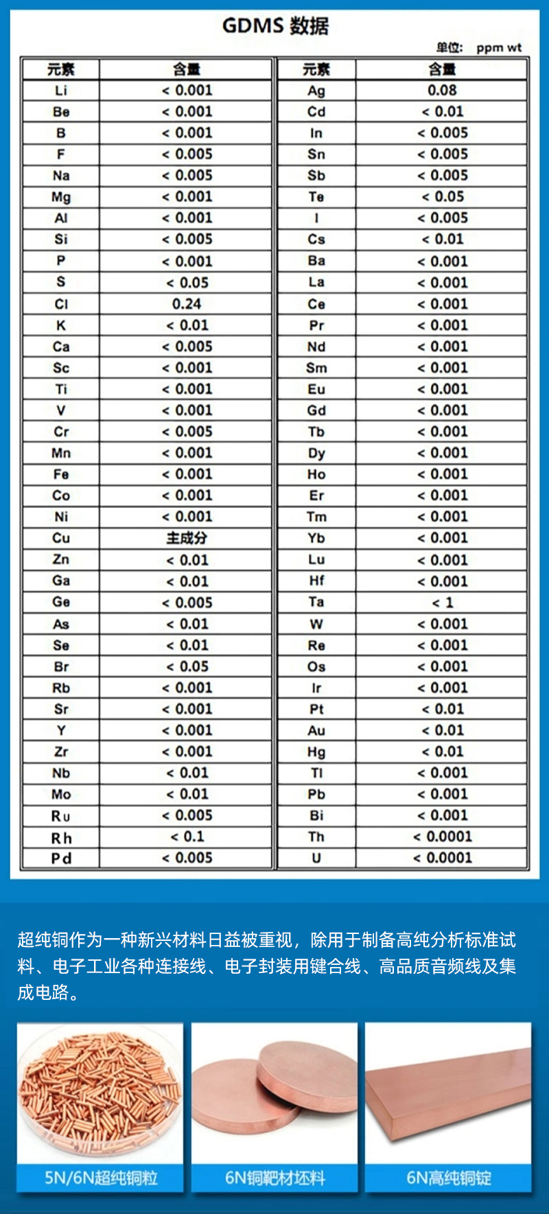 单晶铜、超纯铜、高纯铜
