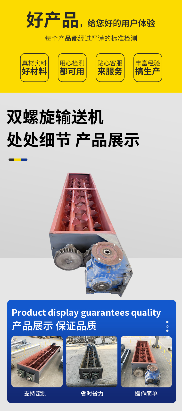 双轴螺旋输送机料仓配套U型螺旋提升机干粉颗粒无轴物料给料绞龙