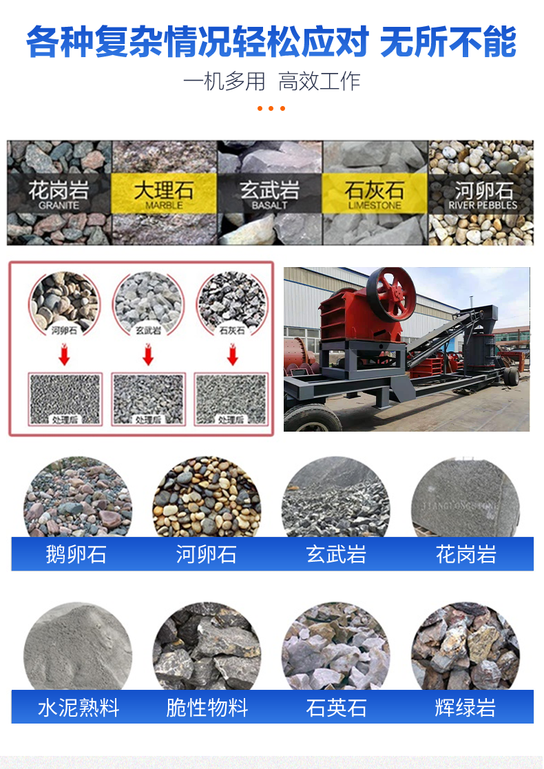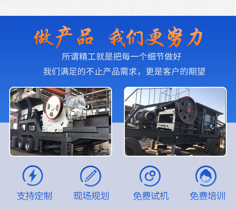 轮胎式移动锤头合金材质 干湿两用颚式破碎机设备型号 大功率电机