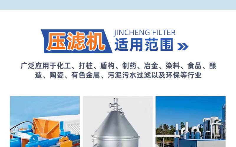板框式压滤机、隔膜压滤机、厢式压滤机、车载压滤机、移动式压滤机、全自动水冲洗压滤机、程控自动压滤机、泥浆压滤机、污泥压滤机、污泥脱水机