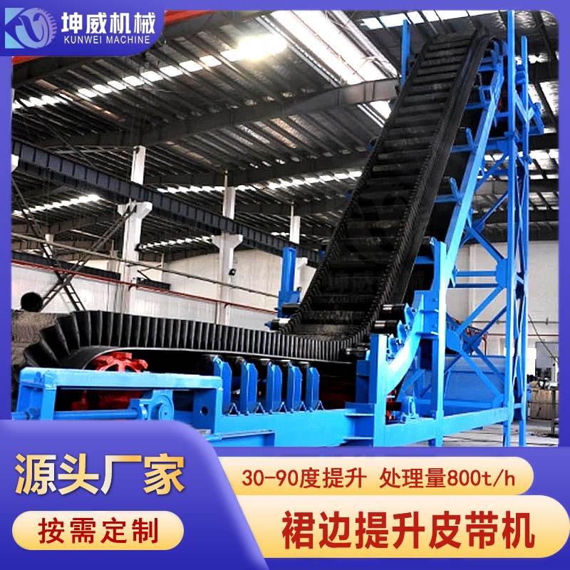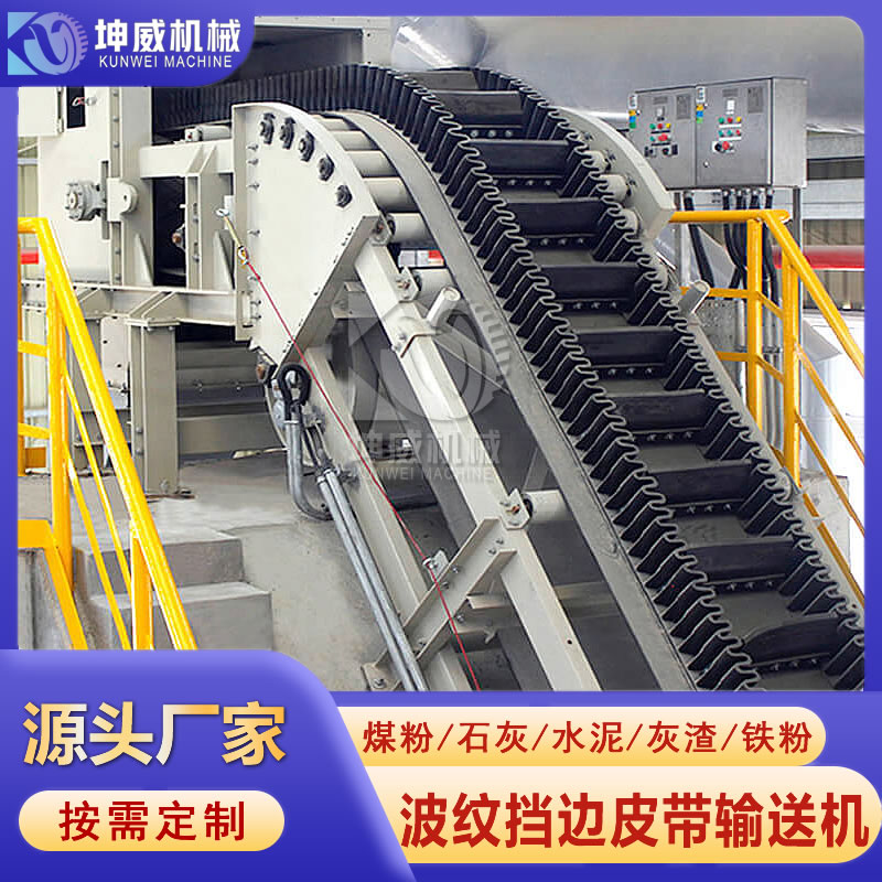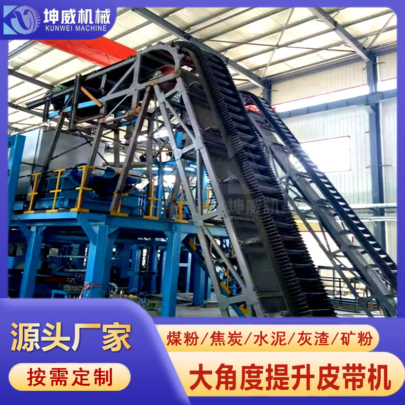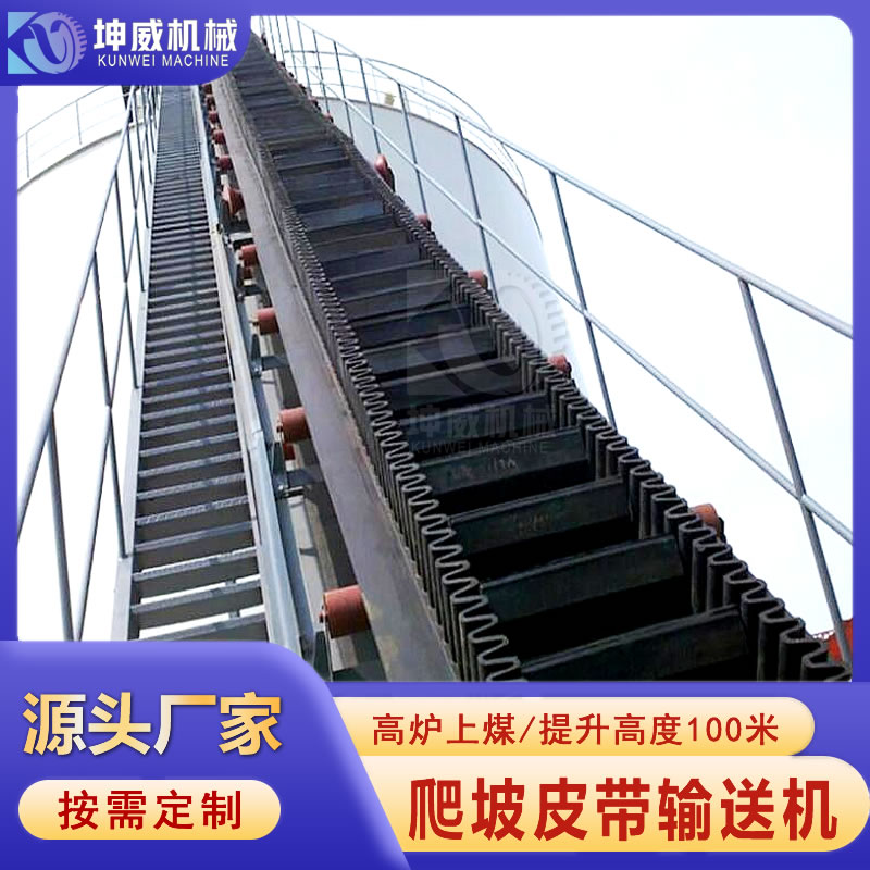坤威矿山格挡大倾角皮带输送机 矿粉防撒带式运输机 煤场煤渣皮带机