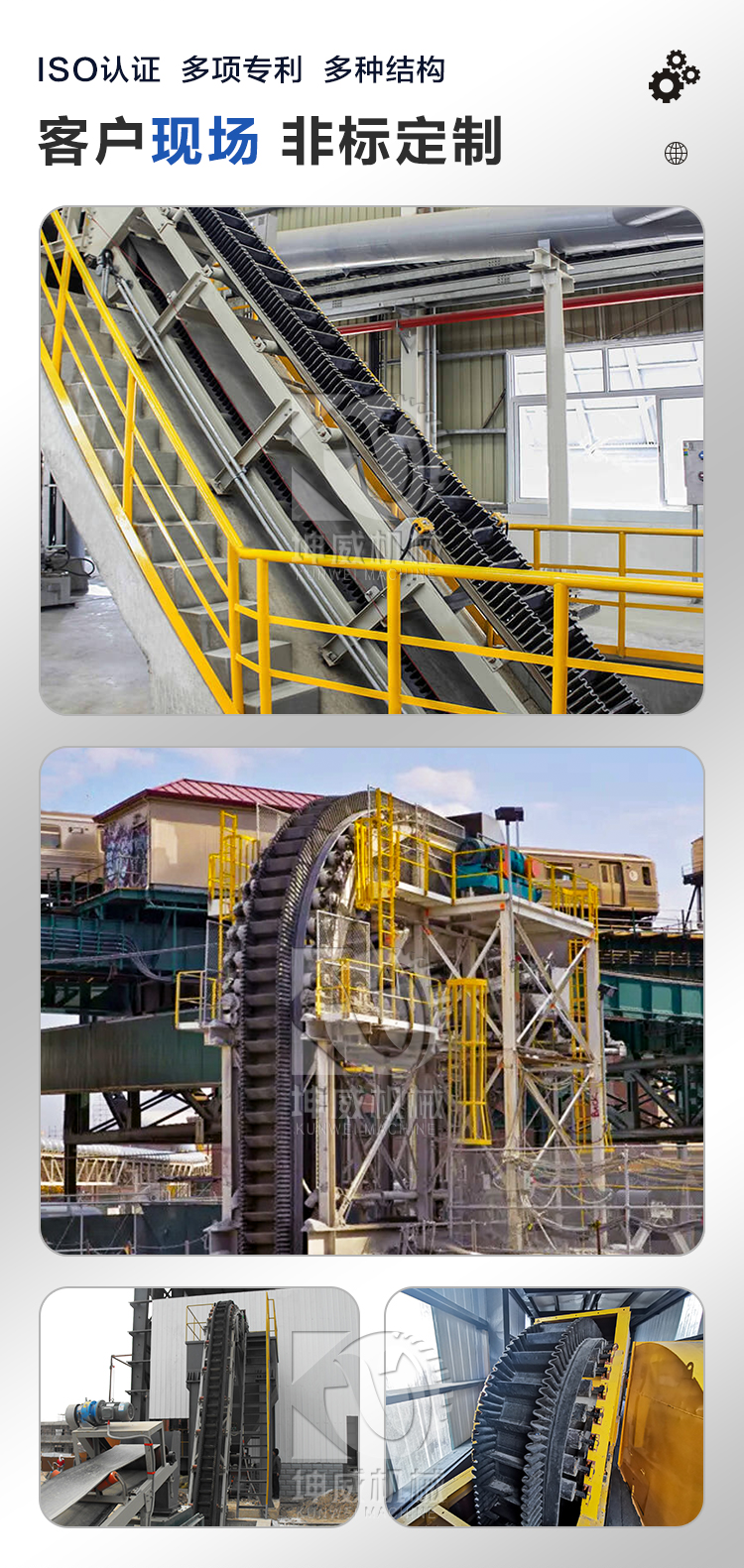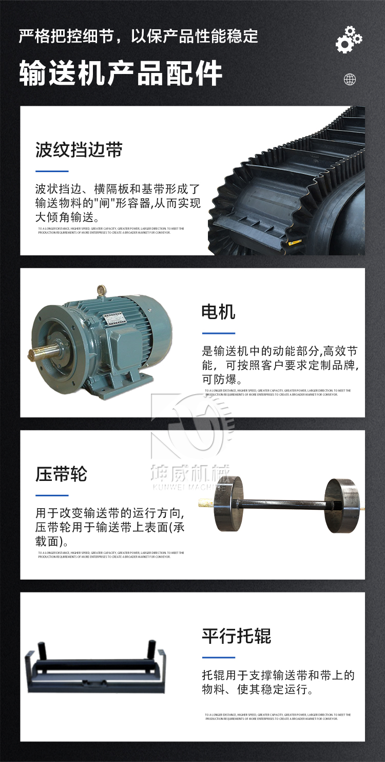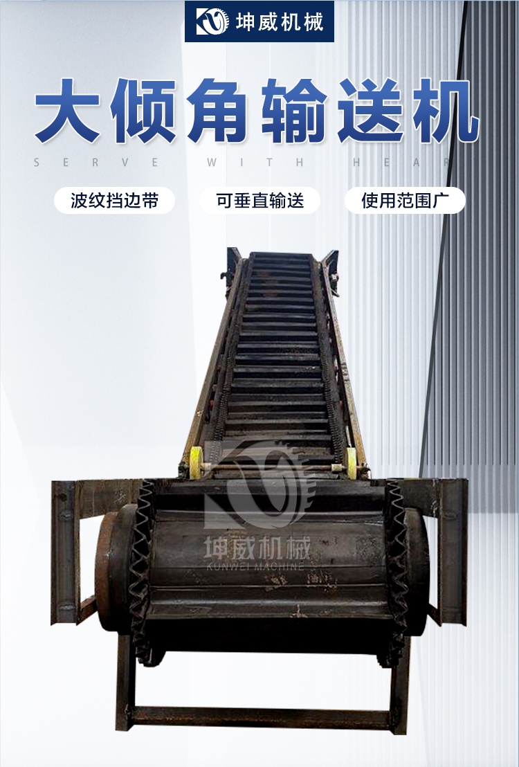 坤威矿山格挡大倾角皮带输送机 矿粉防撒带式运输机 煤场煤渣皮带机