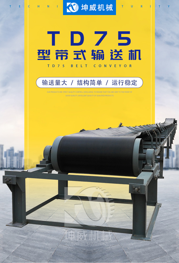 坤威供应带式输送机 td75型皮带传输机 矿用皮带机重型传送机定制