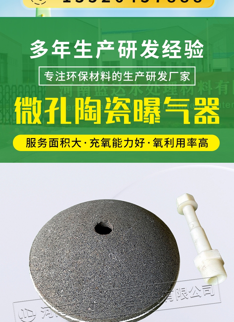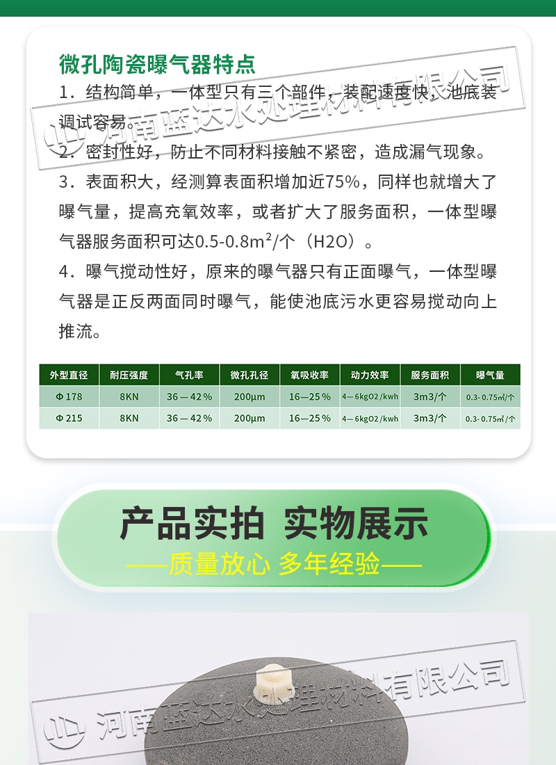 蓝达 球面型陶瓷微孔曝气器 污水处理专用曝气头 养殖充氧曝气设备