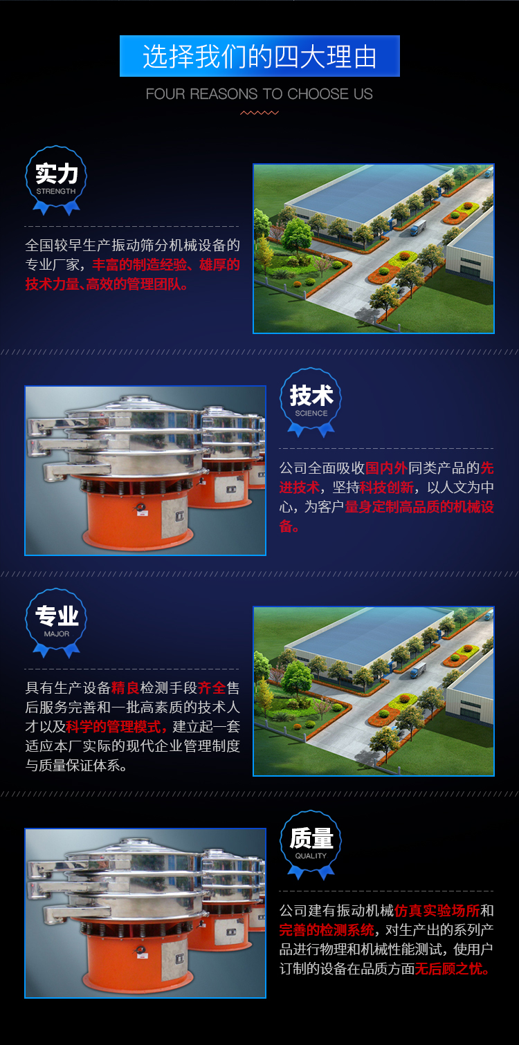 滚筒筛、直线振动筛、方形摇摆筛、斗式提升机、圆形振动筛、圆形摇摆筛、筛分设备