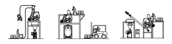 配置2:人工直接投料,配合叉车运输,无重力混合机下接吨带包装机;