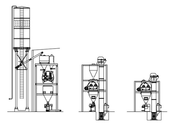 配置3:人工投料方式入无重力混合机,二次提升后进成品仓,再包装;