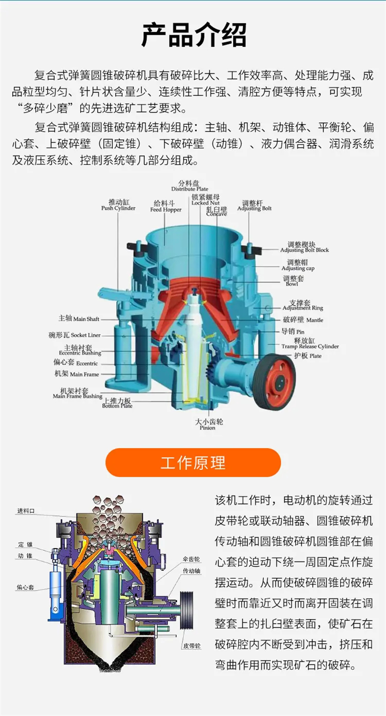多缸液压圆锥破碎机 鹅卵石砂石骨料 低能耗 多功能应用 精细筛分
