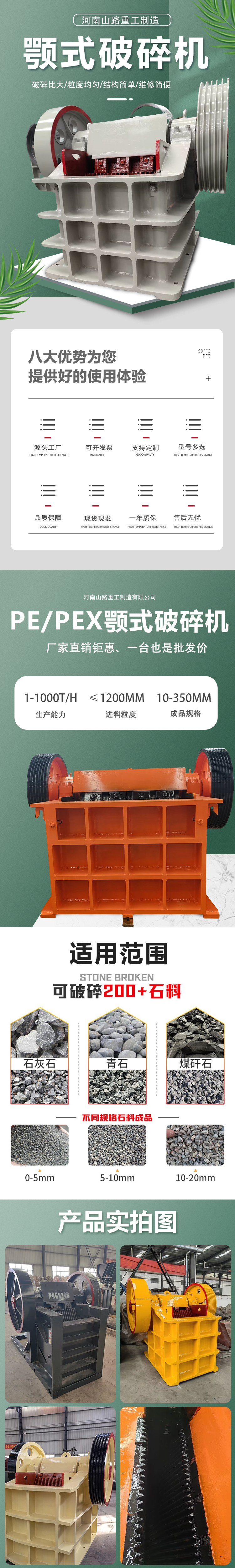碎石机、制砂机、石子机、高猛钢、破碎机、粉碎机、纯铜电机、加厚机身、中碎矿石、移动破碎站、碎石颚破机、碎石生产线、石料厂颚破机、大中小型颚破机