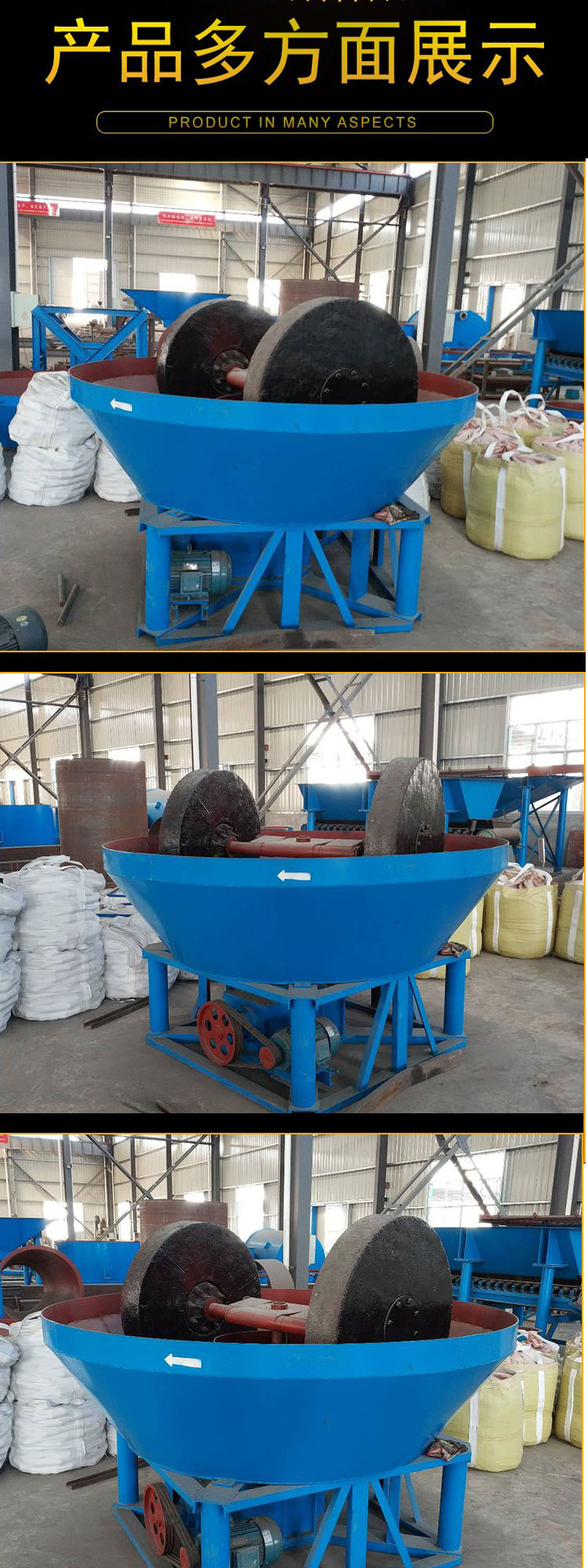 小型沙金设备碾金机 湿碾子研磨机 选金三辊研磨粉机磨矿产量高