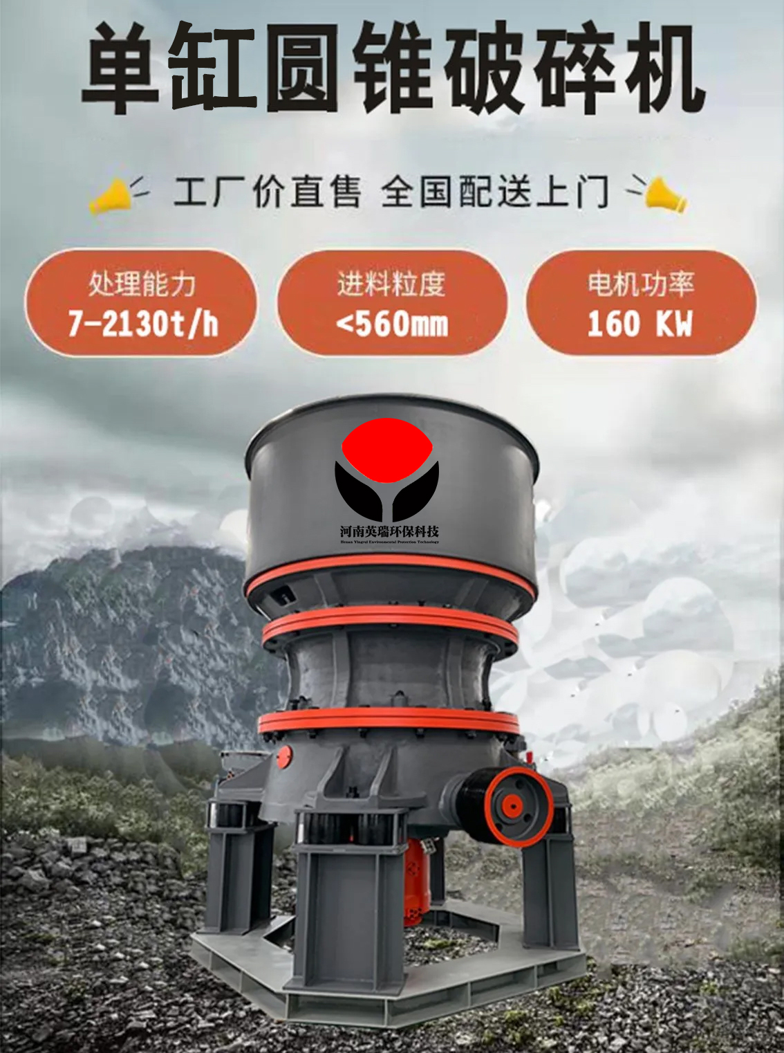 英瑞牌新型液压圆锥破 辉绿岩破机 大型矿石破粉磨设备