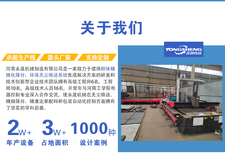 气流筛、高频筛、振动筛、过滤机、摇摆筛、直排筛、试验筛、细粉直线筛、无尘投料站、多层旋振筛、粉末检验筛、酵母粉旋振筛、不锈钢直线筛、煤粉吨包投料站、无尘吨包投料站、粉体吨包拆包机、吨袋拆包机、真空上料机、真空加料机、真空输送机、真空吸料机、负压吸料机