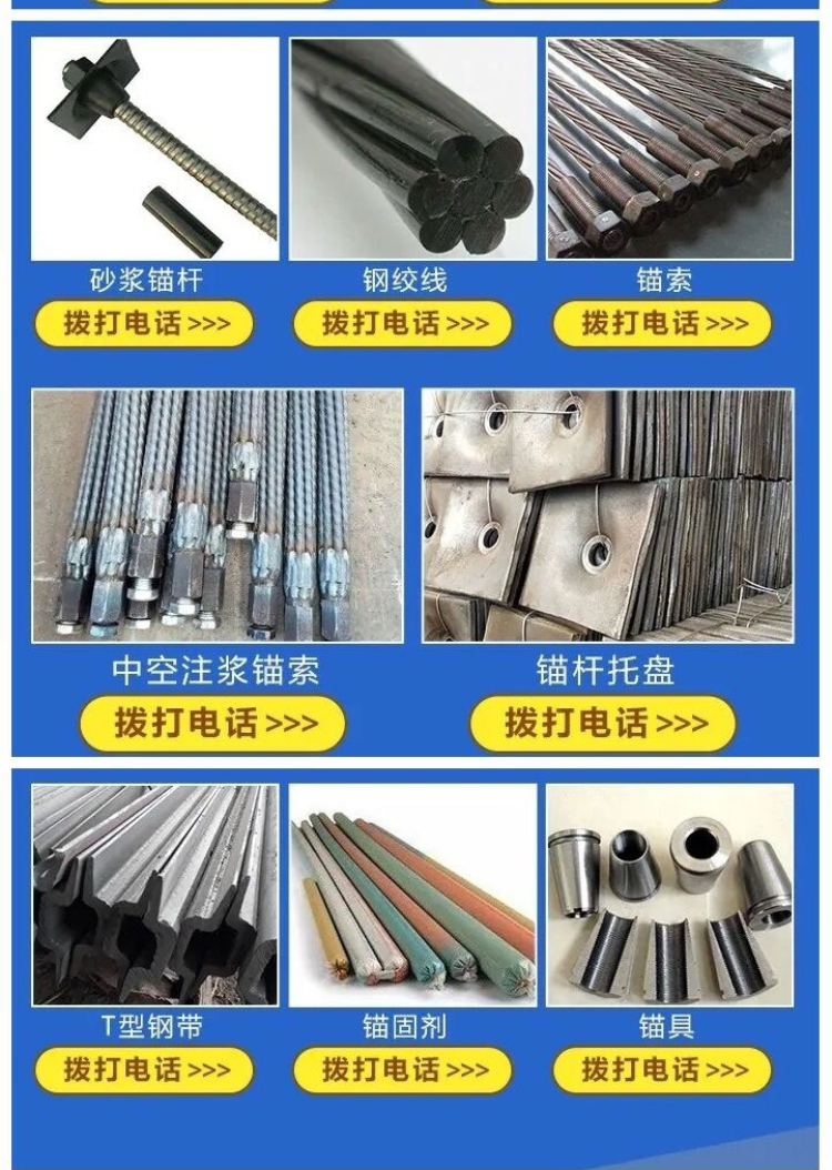 钢轨、矿工钢、U型钢支架、矿用锚杆、管缝锚杆、中厚板